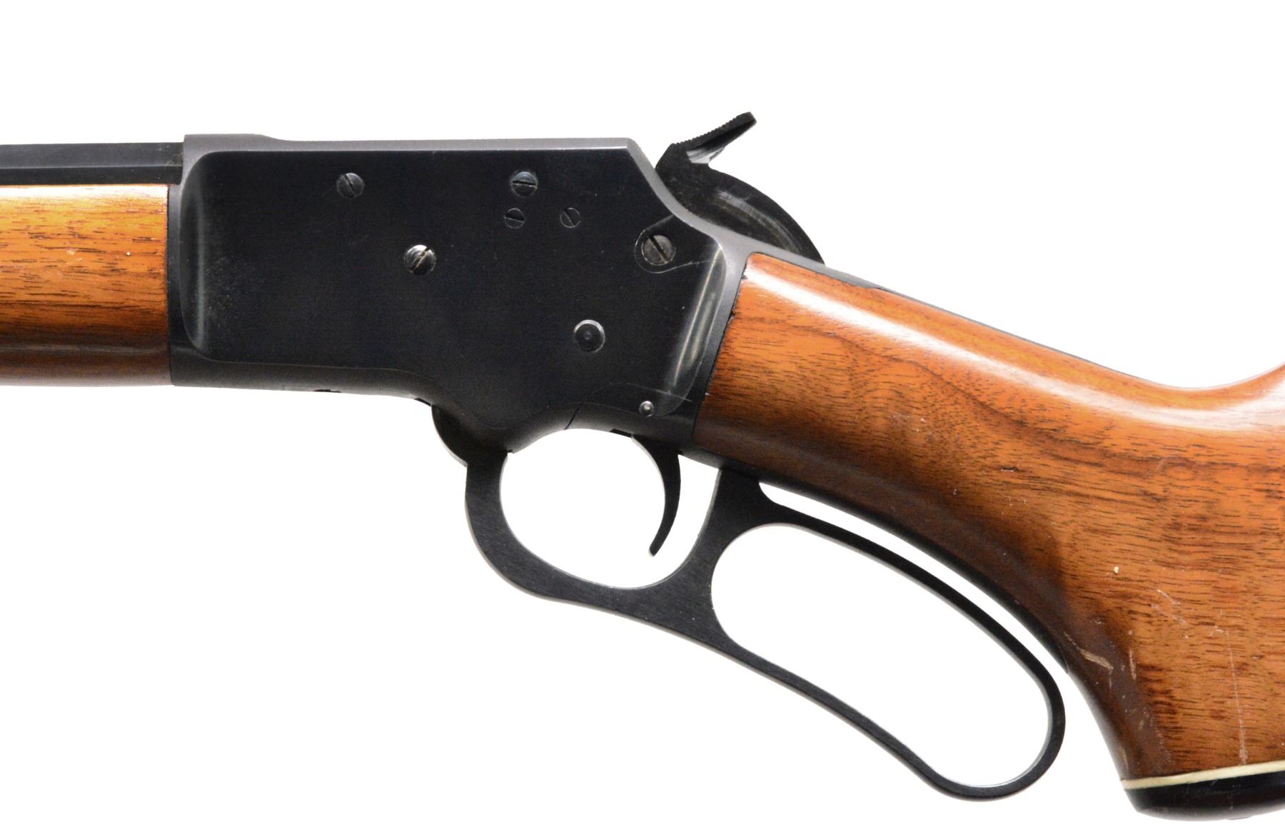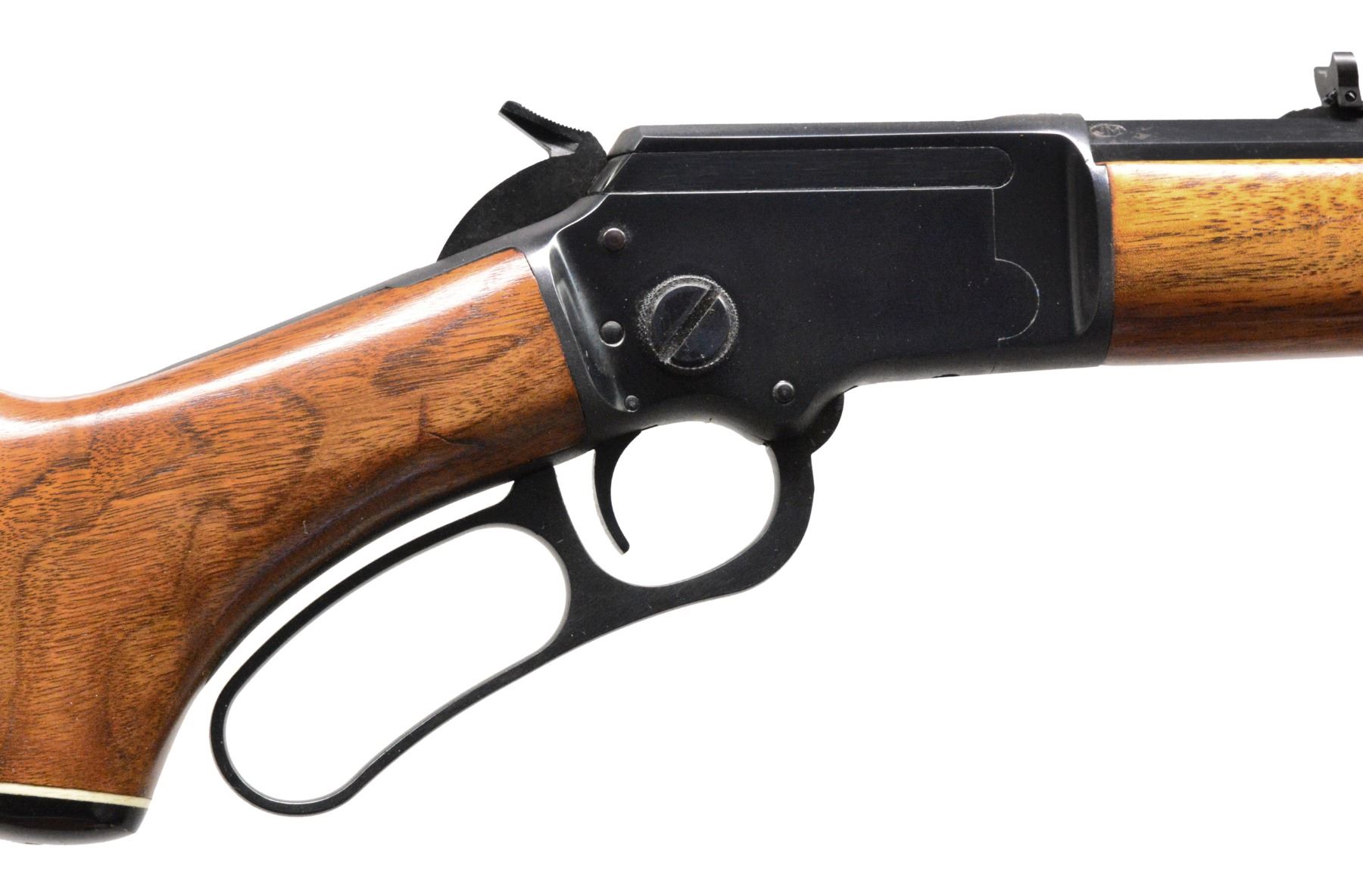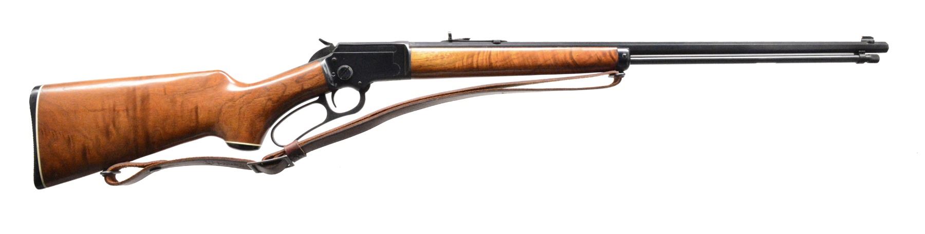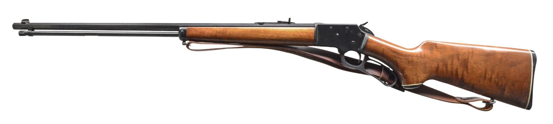 Cal. 22 LR. S# 7191556. Bbl. 24" tapered oct. w/ Micro-Groove rifling having "JM" proof mark on right flat. No other mfg. markings are visible on bbl. Bead front sight w/ elevator adj. sporting rear sight. Full length mag. Nicely grained walnut forearm & pistol grip stock w/ Marlin plastic buttplate & grip cap having white line spacers. Toeline of stock has Marlin trademark. Marlin marked leather sling. S# indicates 1971 mfg. The 39 oct. was similar to the Golden 39A except for the oct. bbl. Records show that 2,551 oct. bbl. 39A were mfg. in 1973 only, these had standard bbl. markings. Pre-production prototype of the 39 Octagon? UNATTACHED ACCESSORIES: signed letter from Lt. Col. Brophy's daughter regarding this lot. CONDITION: over 98% blue w/ 1 open screw hole on top of frame. Stocks have good original finish showing scattered marks. Bore is bright w/ sound rifling. PROVENANCE: From the collection of Lt. Col. William S. Brophy. (19-5589/DS). MODERN. $500-1,000.