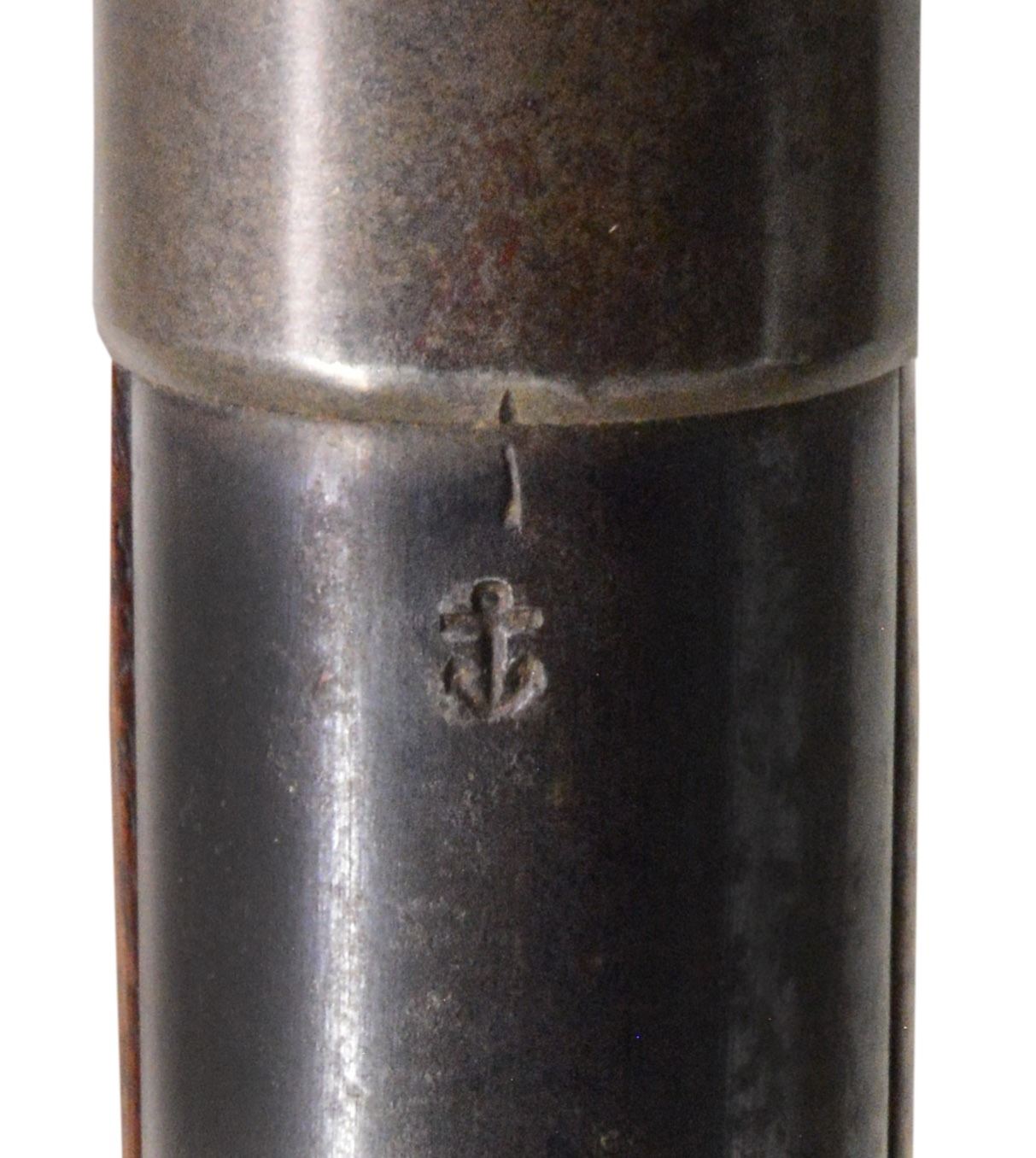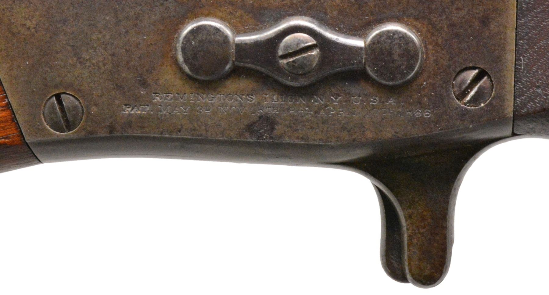 Cal. 50 RF. NSN. Bbl. 8 1/2" rnd. Case colored action features a spur trigger. Appears to be a civilian model lacking any government inspection marks. Walnut forearm & 1 piece grip. CONDITION: bbl. retains 75% dull lightly faded blue showing wear near muzzle w/ areas of light corrosion. Action has dark faded lightly visible case colors showing spots of corrosion. Lightly refinished wood shows deep dents at butt. Bore is bright w/ strong rifling showing spots of light pitting. (01-16858/DS). ANTIQUE. $600-1,000.