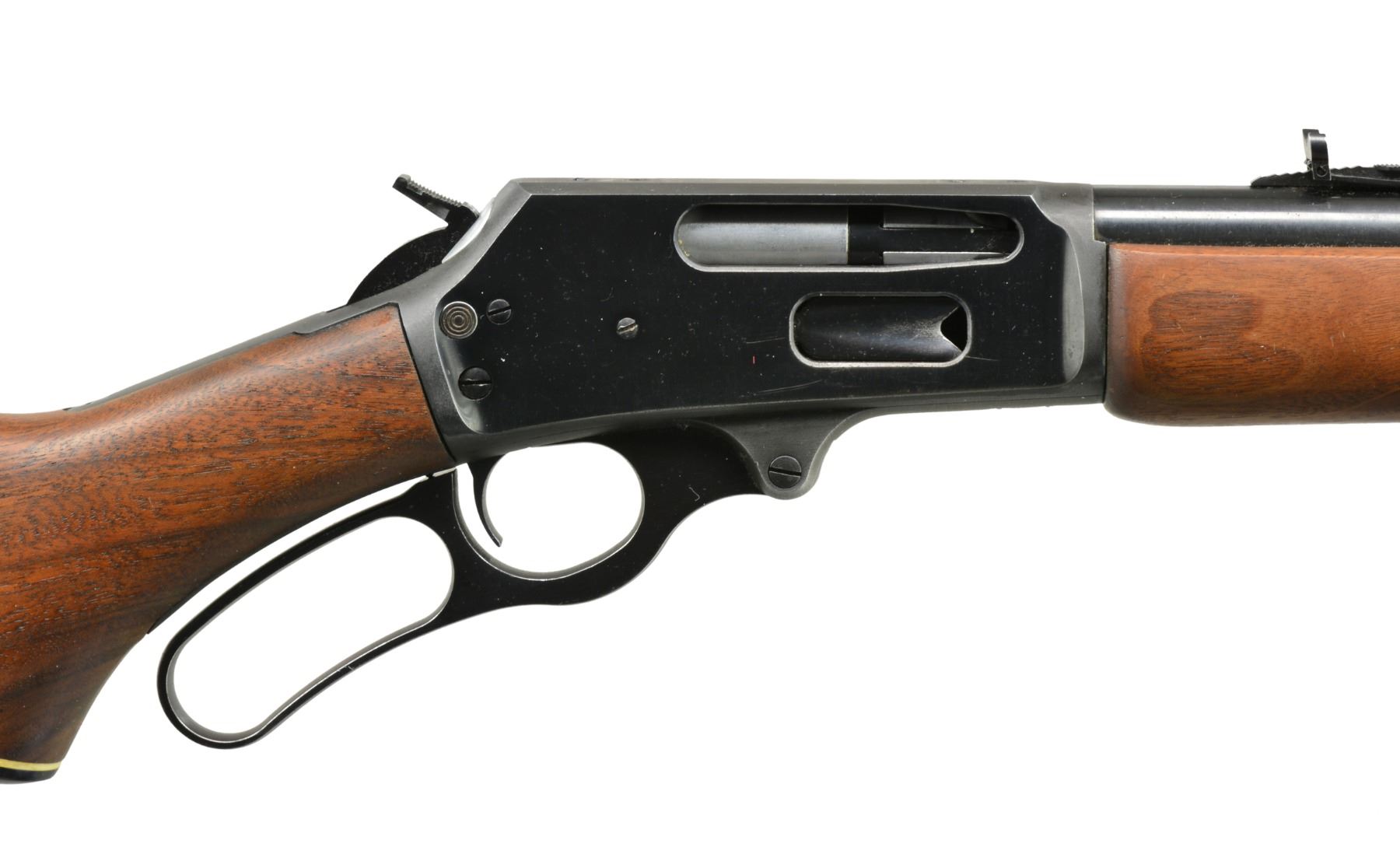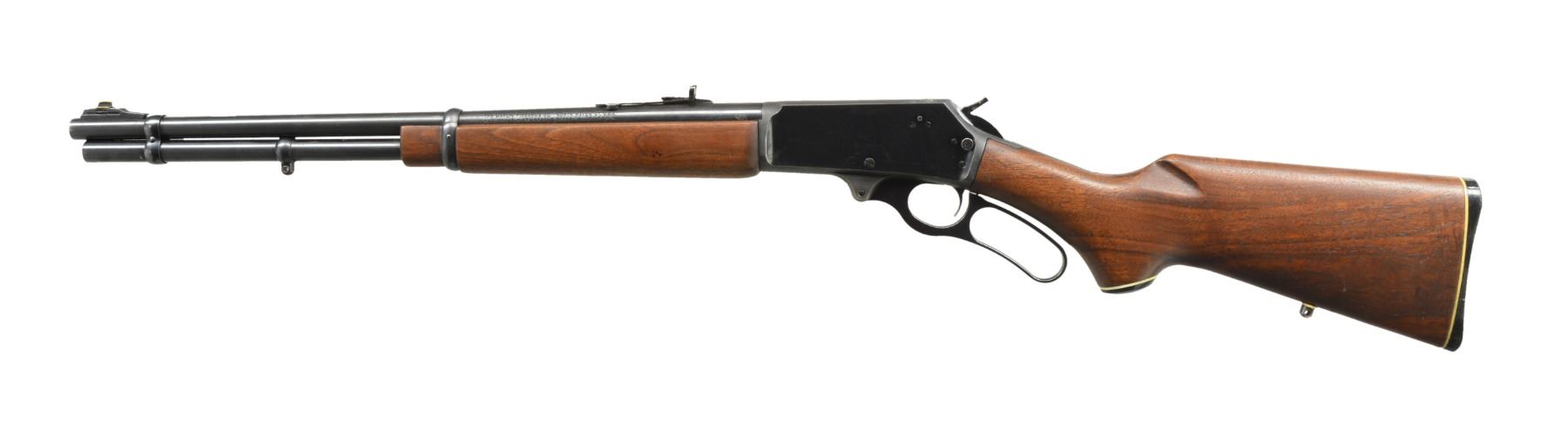 Cal. 30-30. S# 16029078. Bbl. 20" w/ Micro-groove rifling. Ramp mounted bead front sight w/ elevator adj. sporting rear sight. Full length mag. Blue finish. Walnut forearm & capped pistol grip stock w/ white line spacers at pistol grip stock & original buttplate. Added swivels, front swivel is mag. band mounted. CONDITION: over 90% blue showing light edge wear. Stock shows scattered scratches & marks. Bright bore w/ strong rifling. (20-1322/DS). MODERN. $300-400.