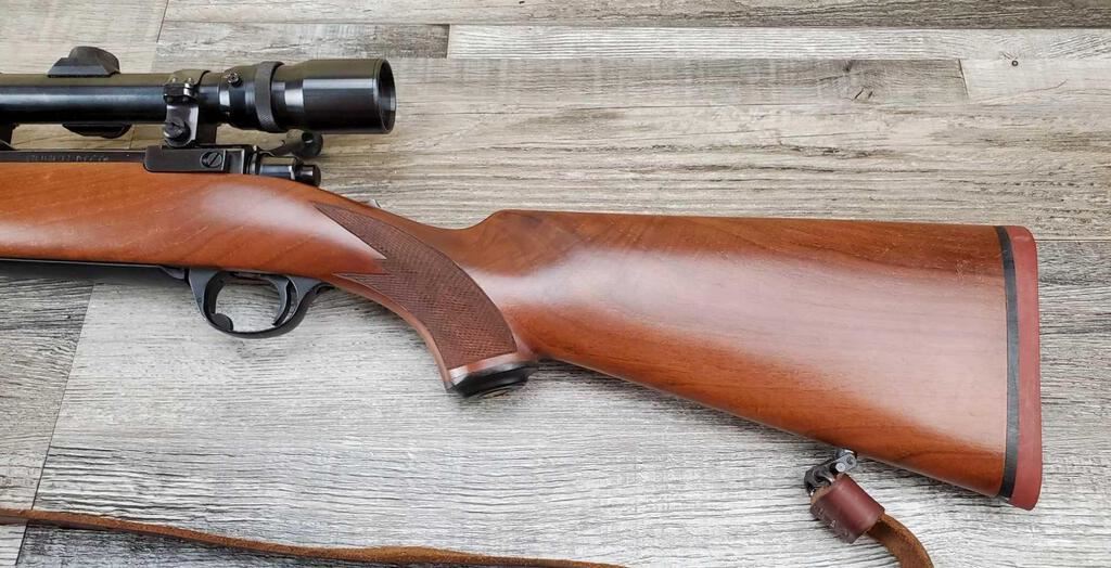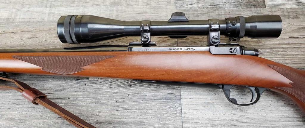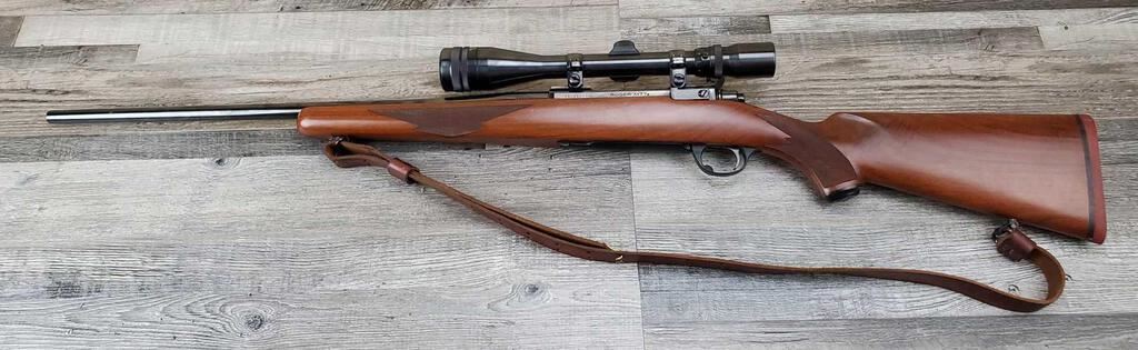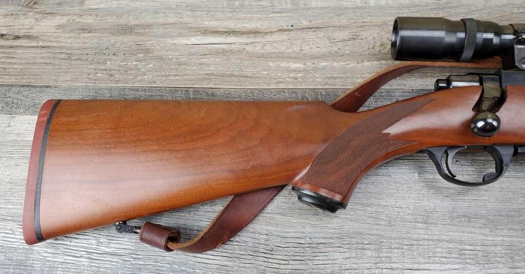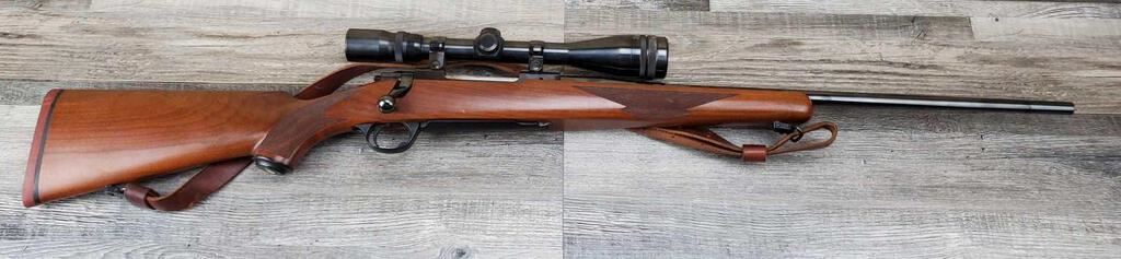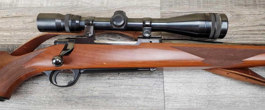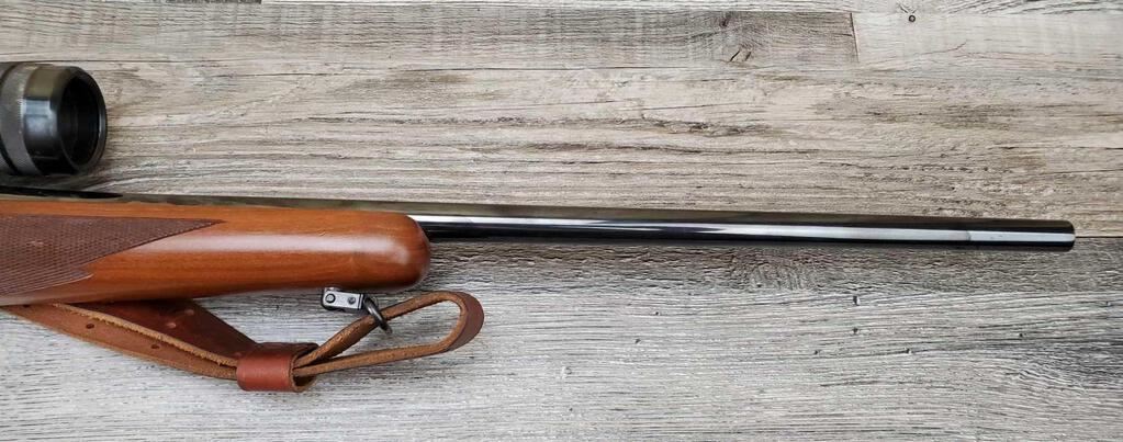 WITH LEATHER SLING. 3X9 SCOPE. MINT BORE.