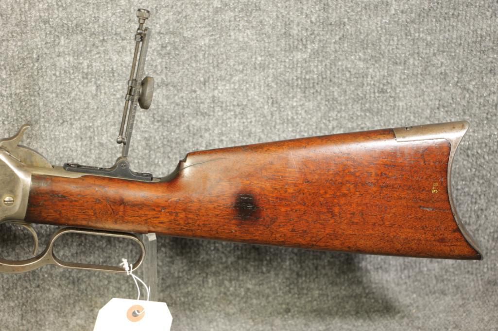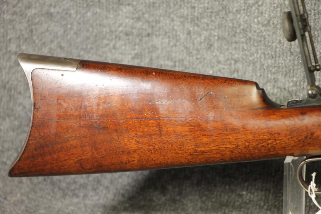45-70. Ser. # 19743. Made 1888. Octagonal 26" barrel. Expected patina. No rust. Lyman tang peep sight. Only minor handling marks.