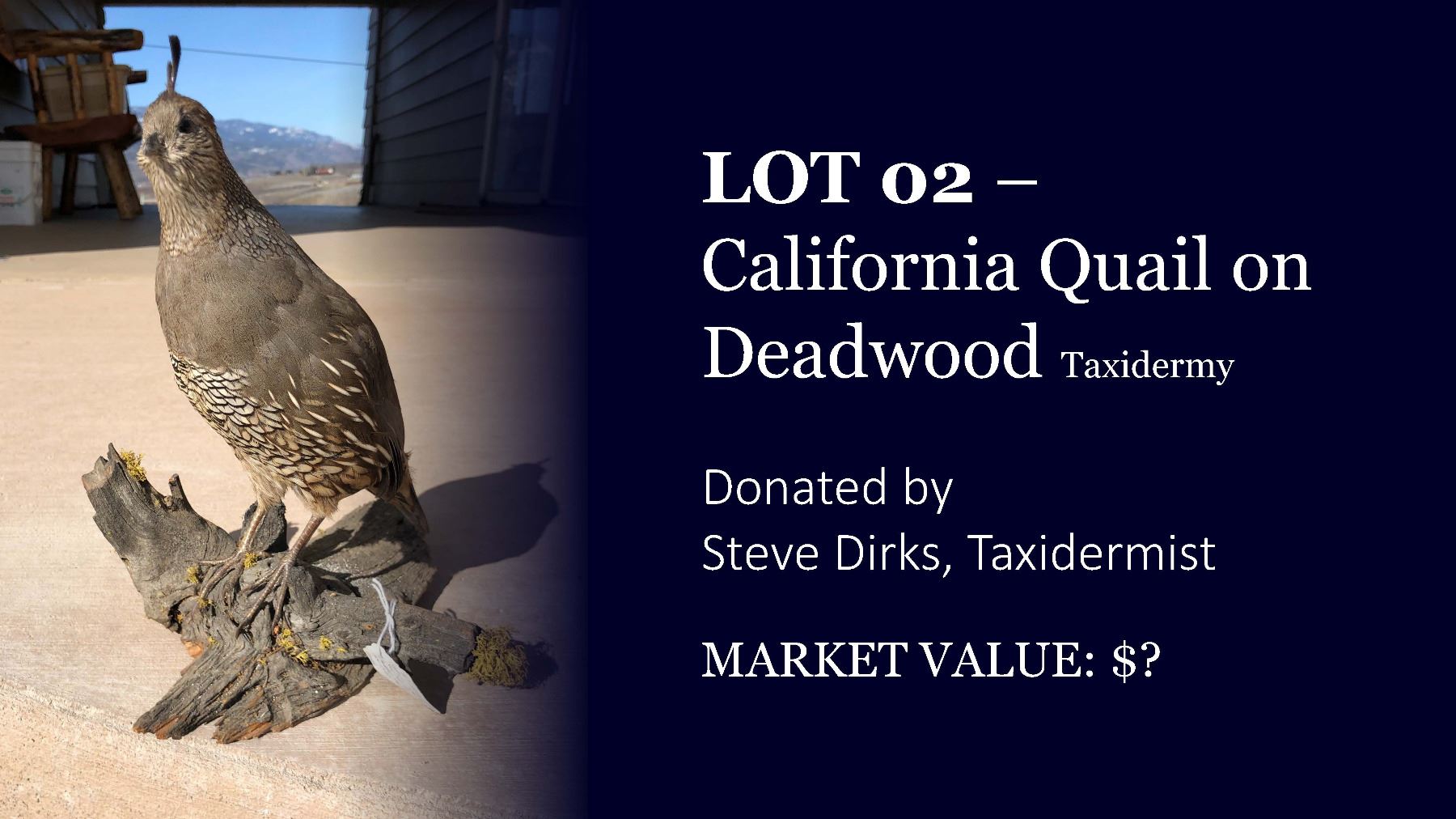 Donated by Steve Dirks, Taxidermist