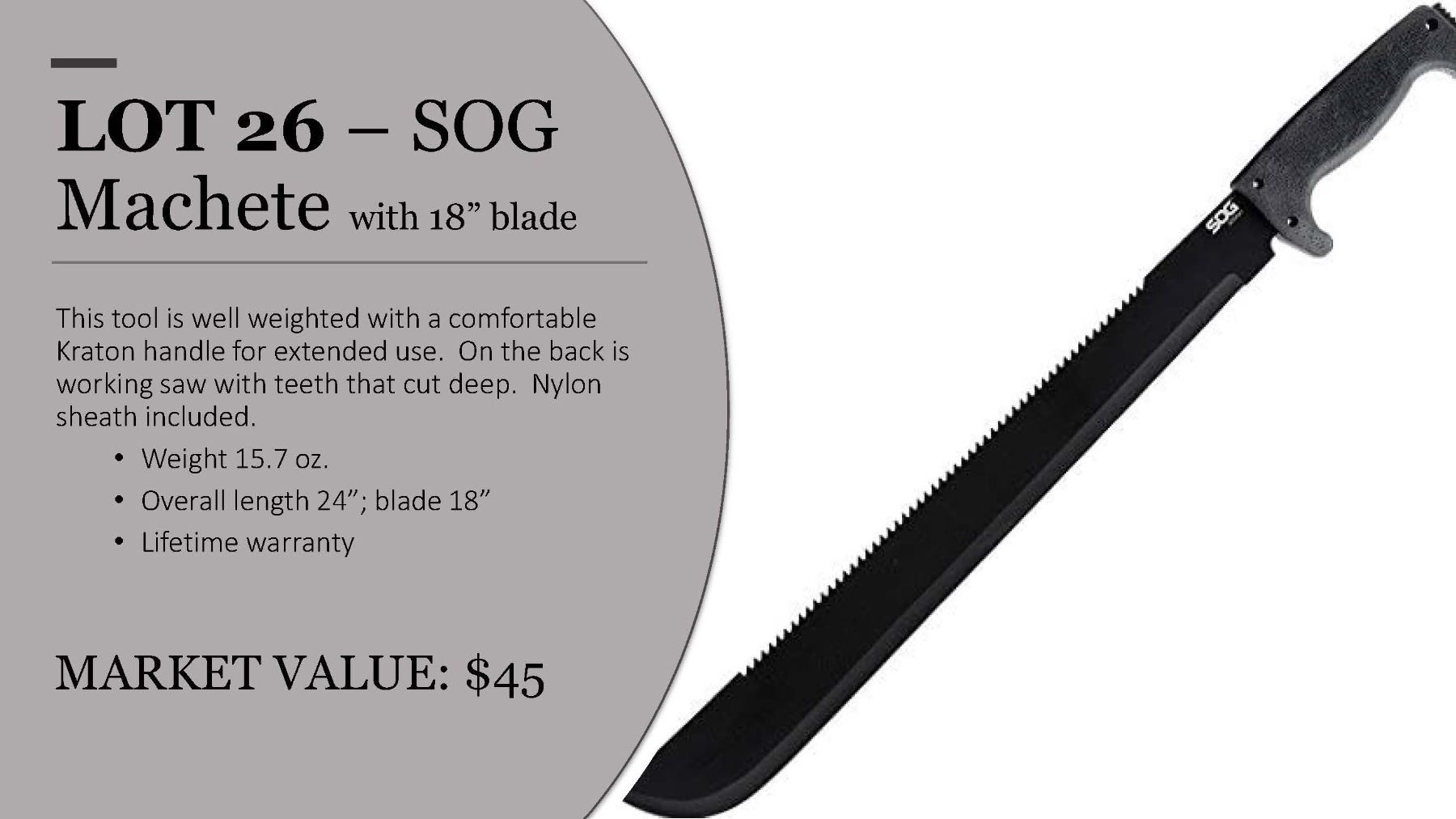 Lot 26 SOG Machete – 18” blade