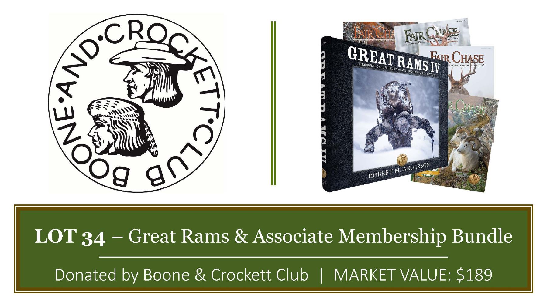 Donated by Boone & Crocket Club Boone and Crockett is excited to offer the fourth installment of Bob Anderson’s Great Rams series. With nearly 500 images—vintage and contemporary field photos from decades of sheep hunting, plus a special photo essay of rams in the wild—and twelve captivating chapters, Great Rams IV will keep readers enthralled every time they turn the page!