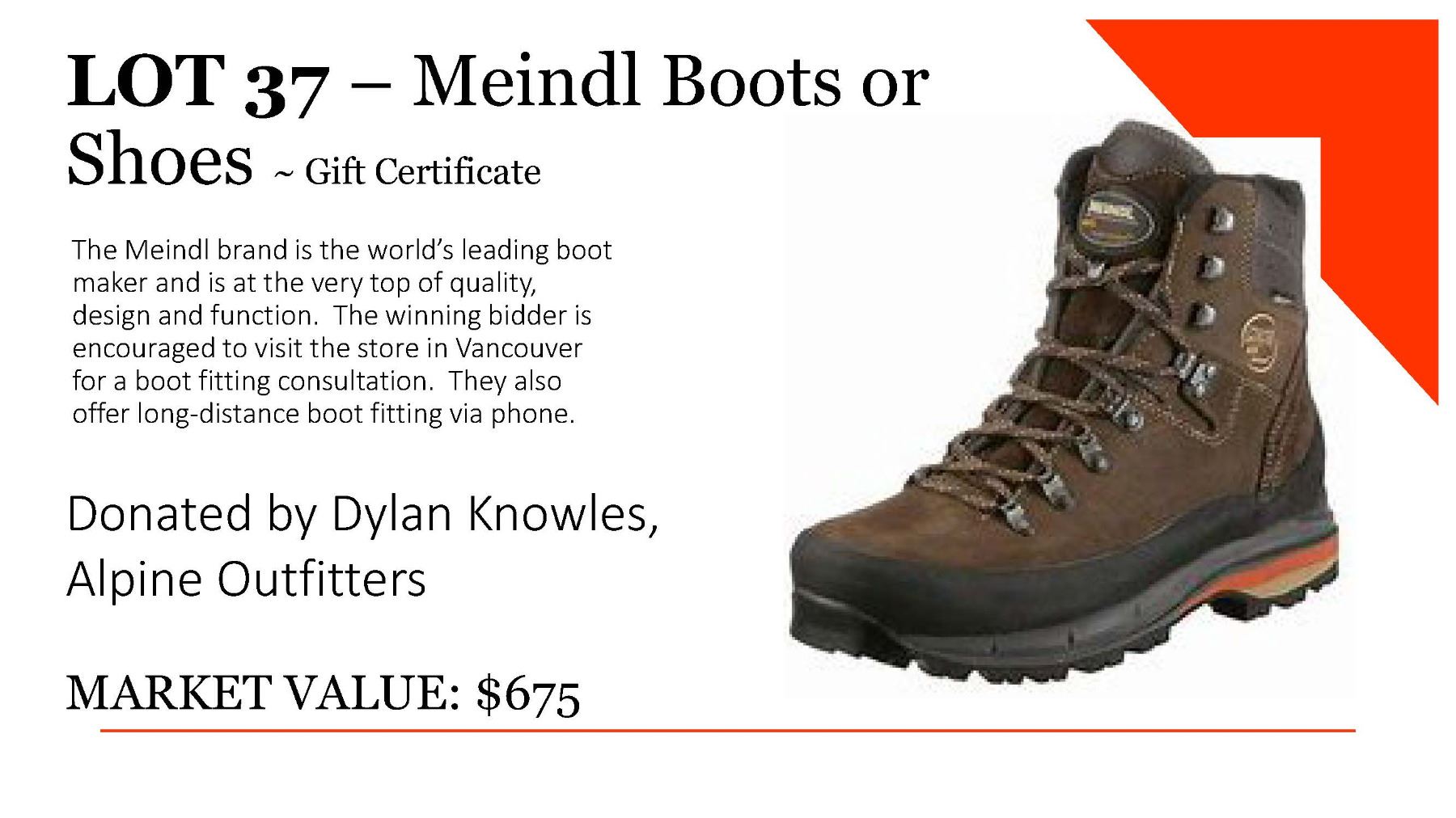 Lot 37 Gift certificate for 1 pair of Meindl boots or shoes