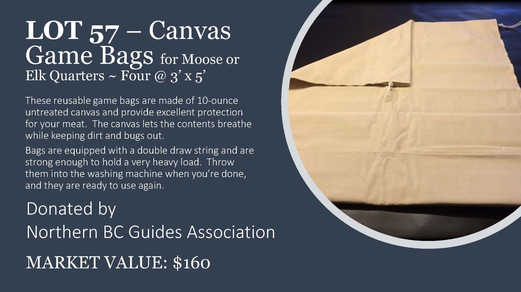 Lot 57 4 - 3'x5' canvas game bags for elk or moose quarters