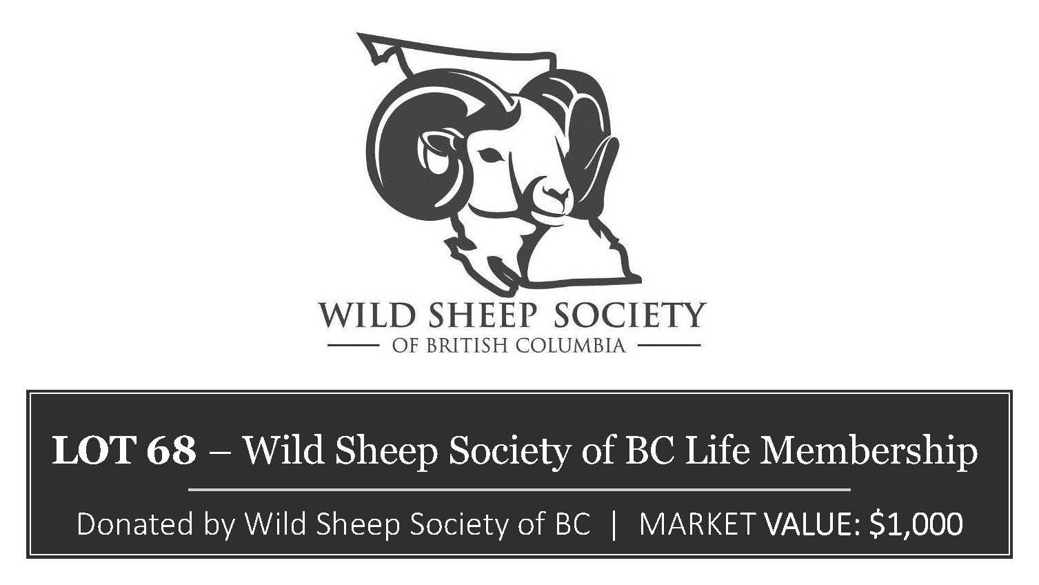 Lot 68 Wild Sheep Society of BC Life Membership