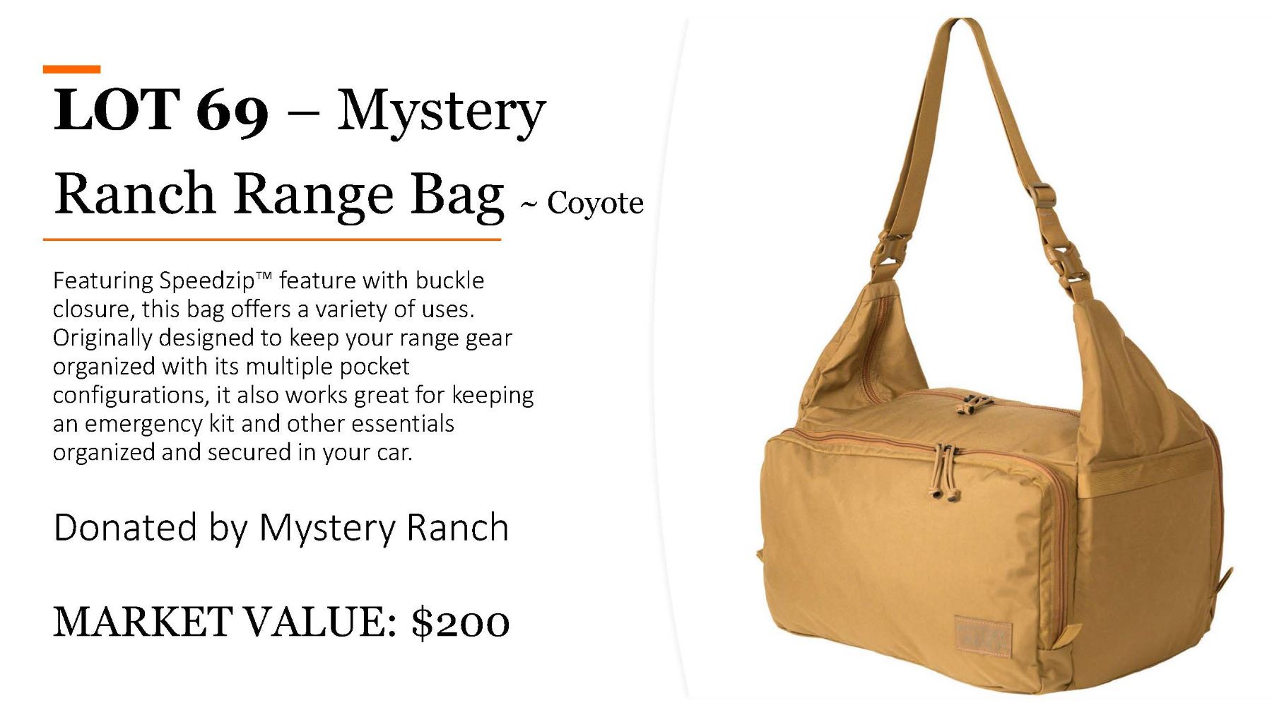 Lot 69 Mystery Ranch Range Bag in Coyote