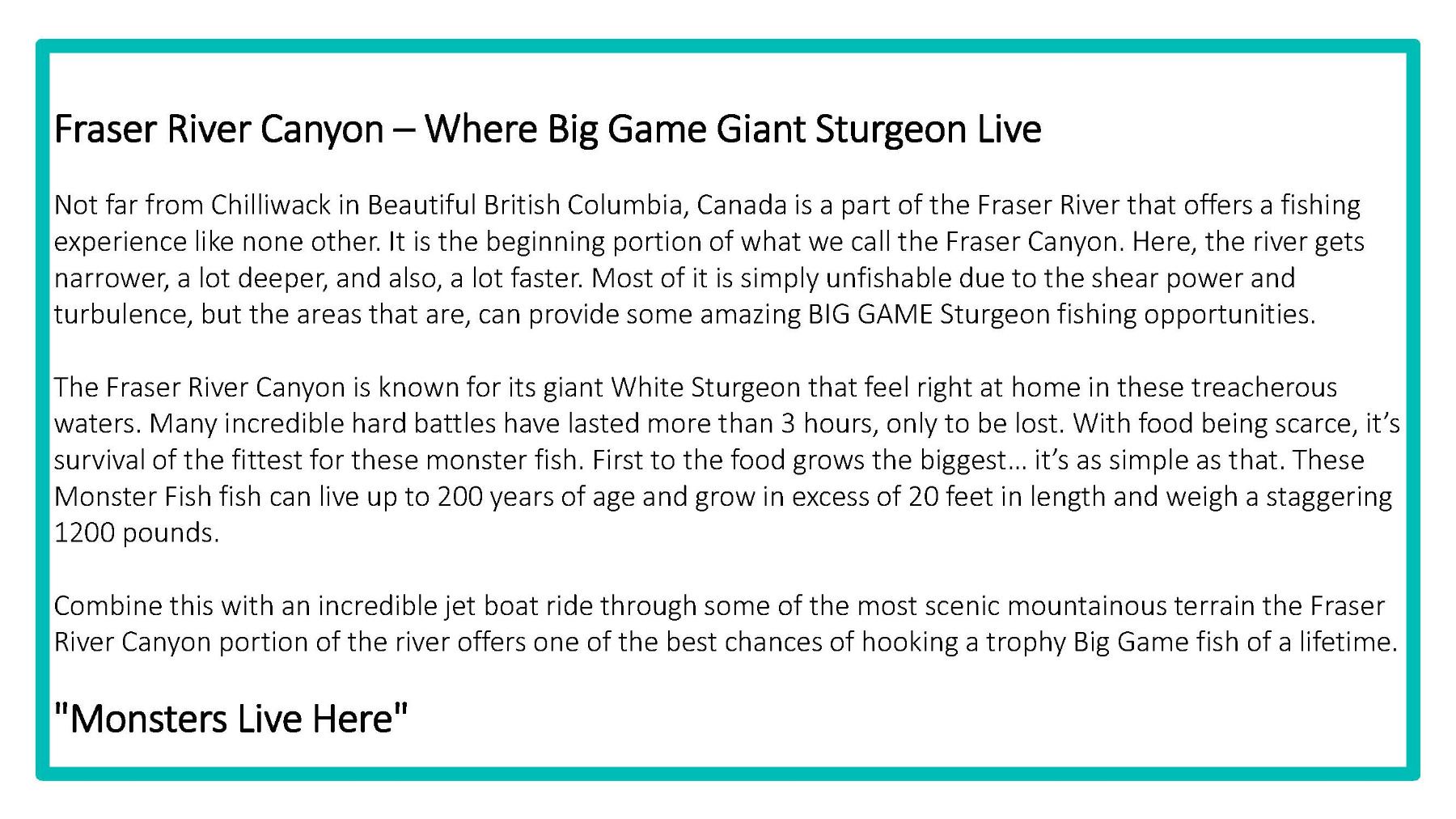 Fraser River Canyon – Where Big Game Giant Sturgeon Live