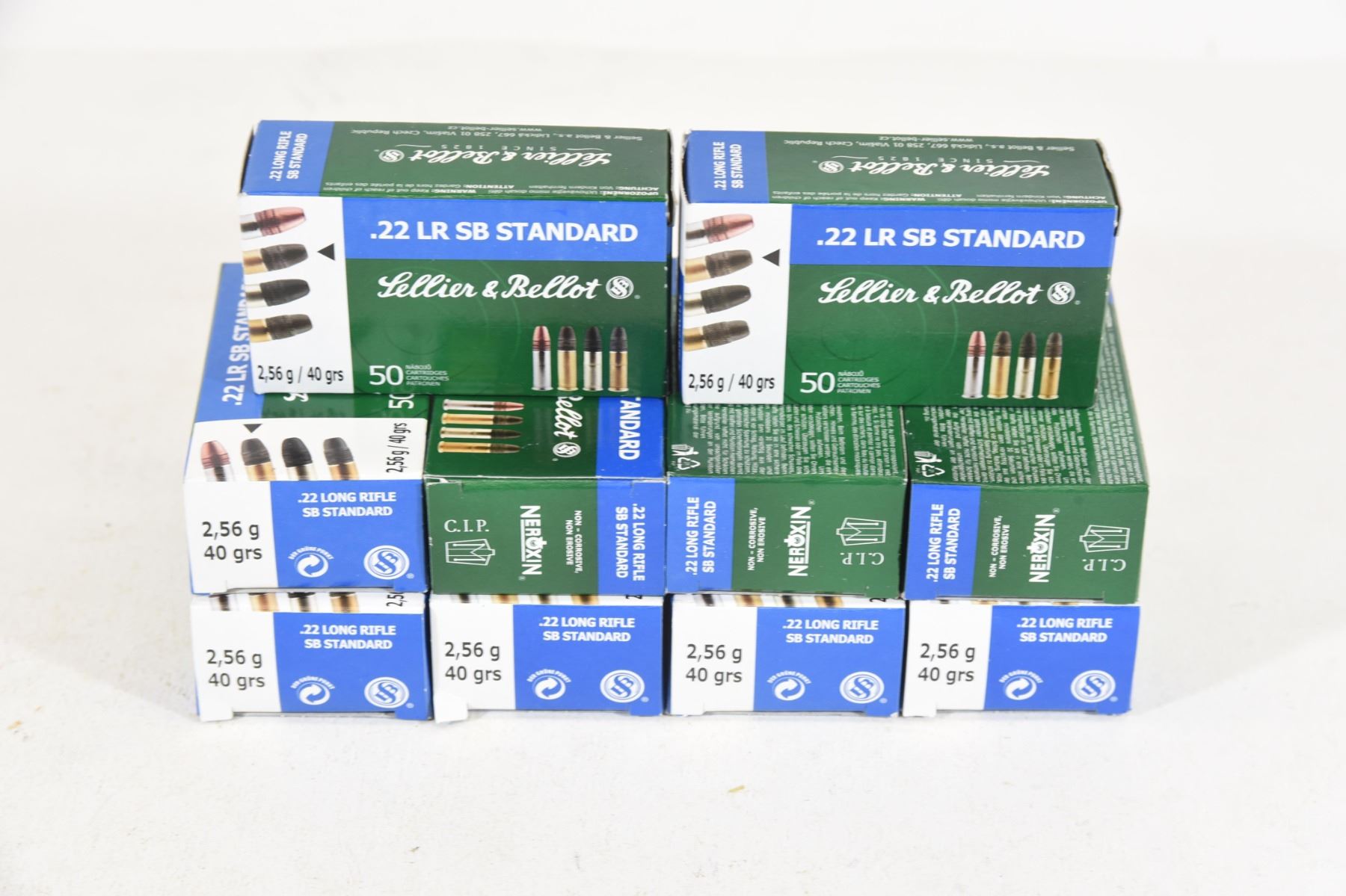 Ten 50-round boxes of S&B 22LR 40gr SB Standard.