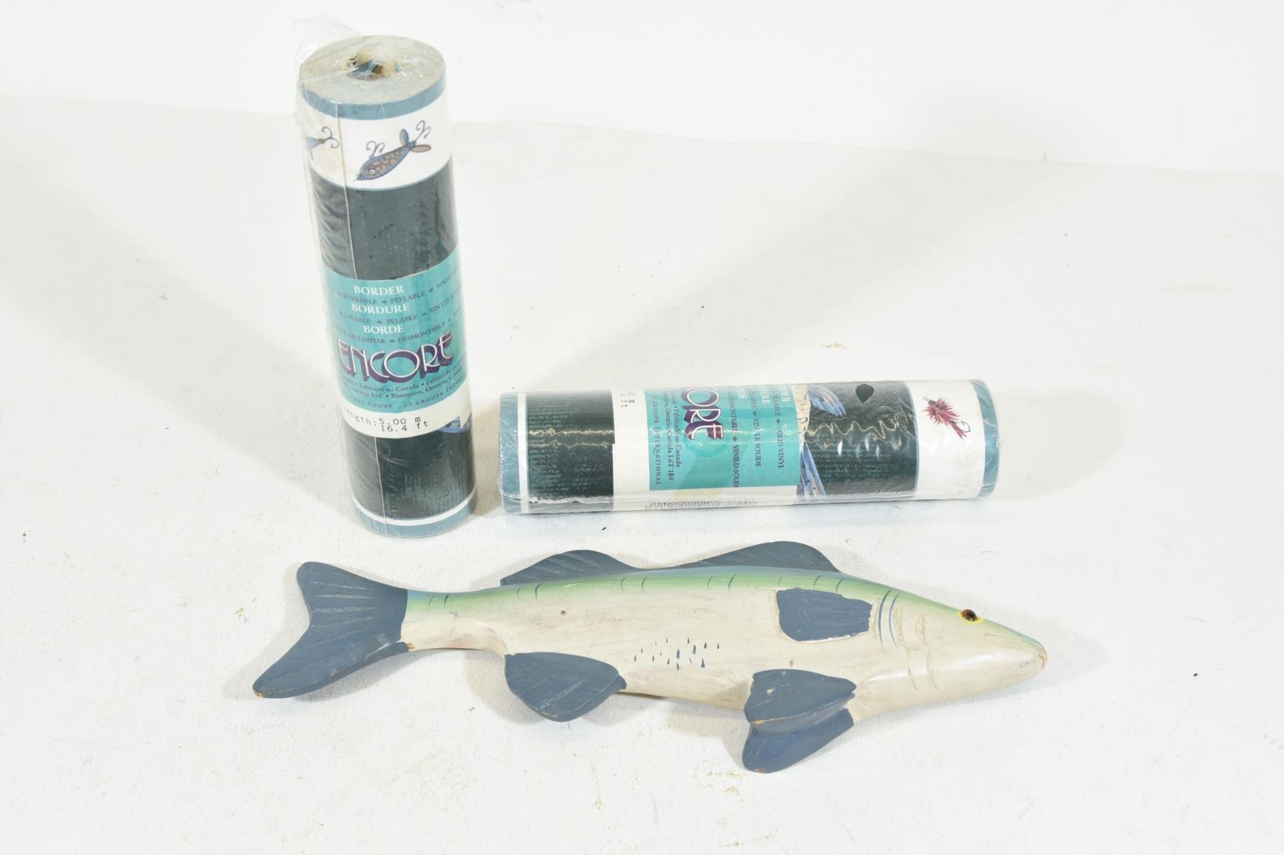 Lot 74 Wooden Fish & 2 Rolls Fishing Wall Paper