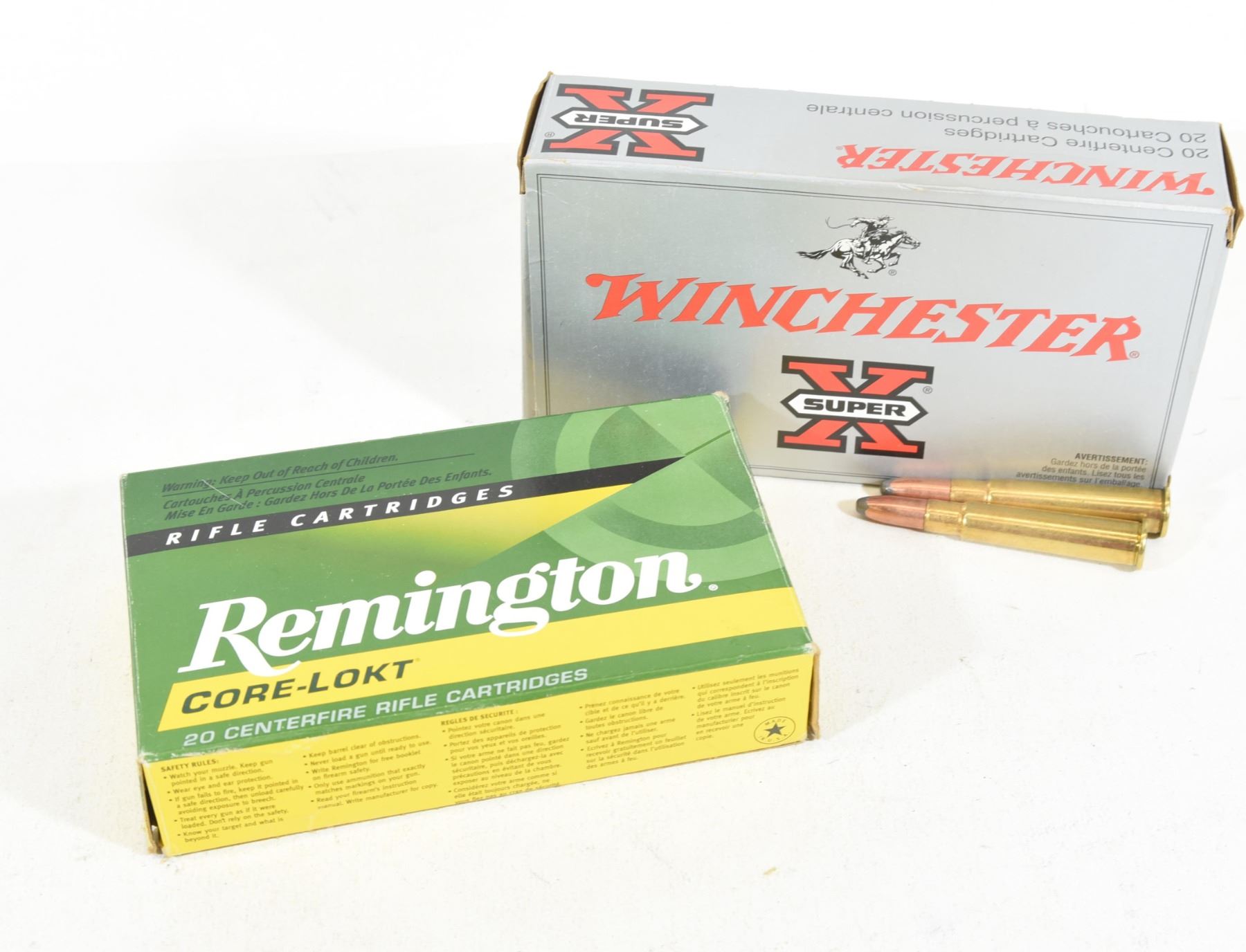 20-round box of Winchester Super X 303 British 180gr Power-Point ammunition. Two loose rounds of 303 British ammunition. 1-round box of Remington Core-Lokt 303British 180gr SP with 13 pieces of brass inside as well.