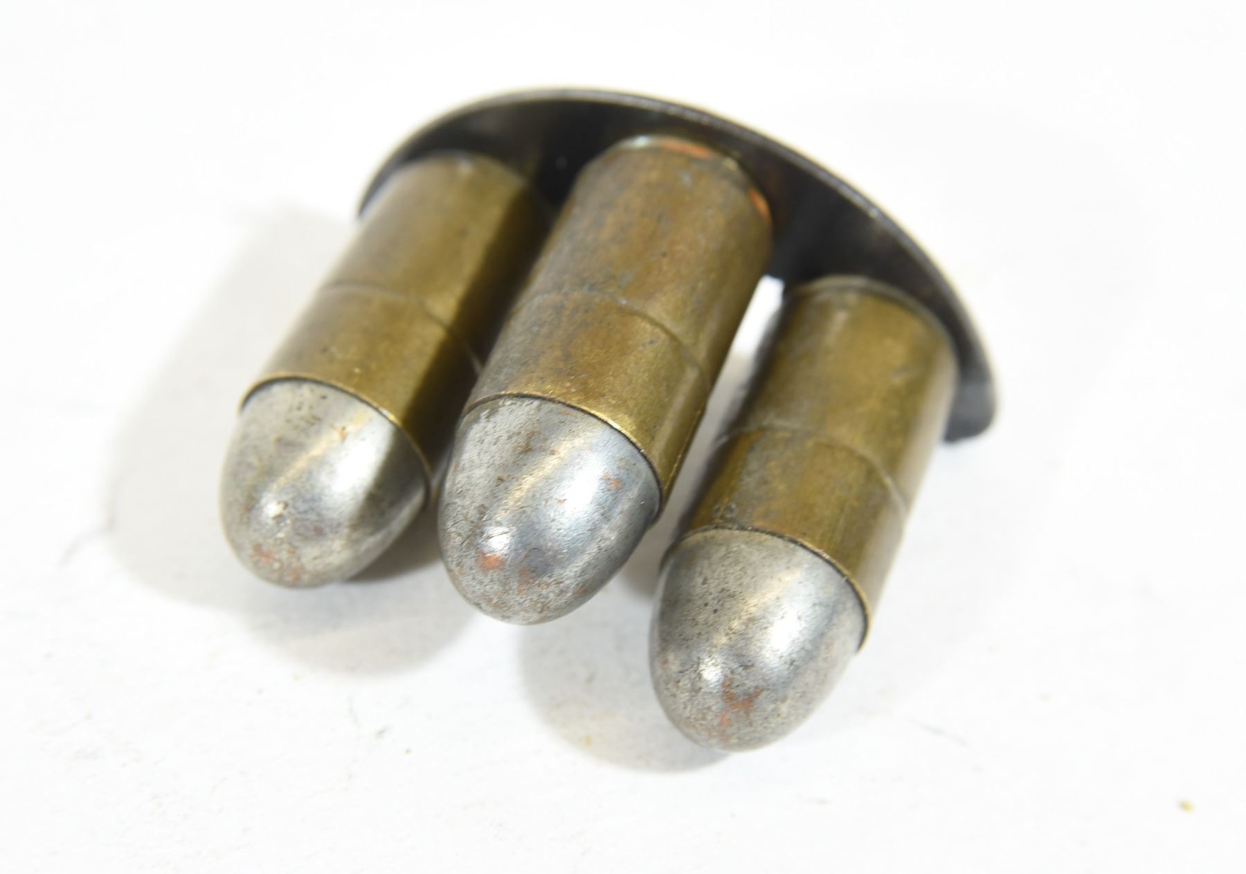 3 rounds 45 ACP silver bullet H/S W18 in 1/2 moon clip.