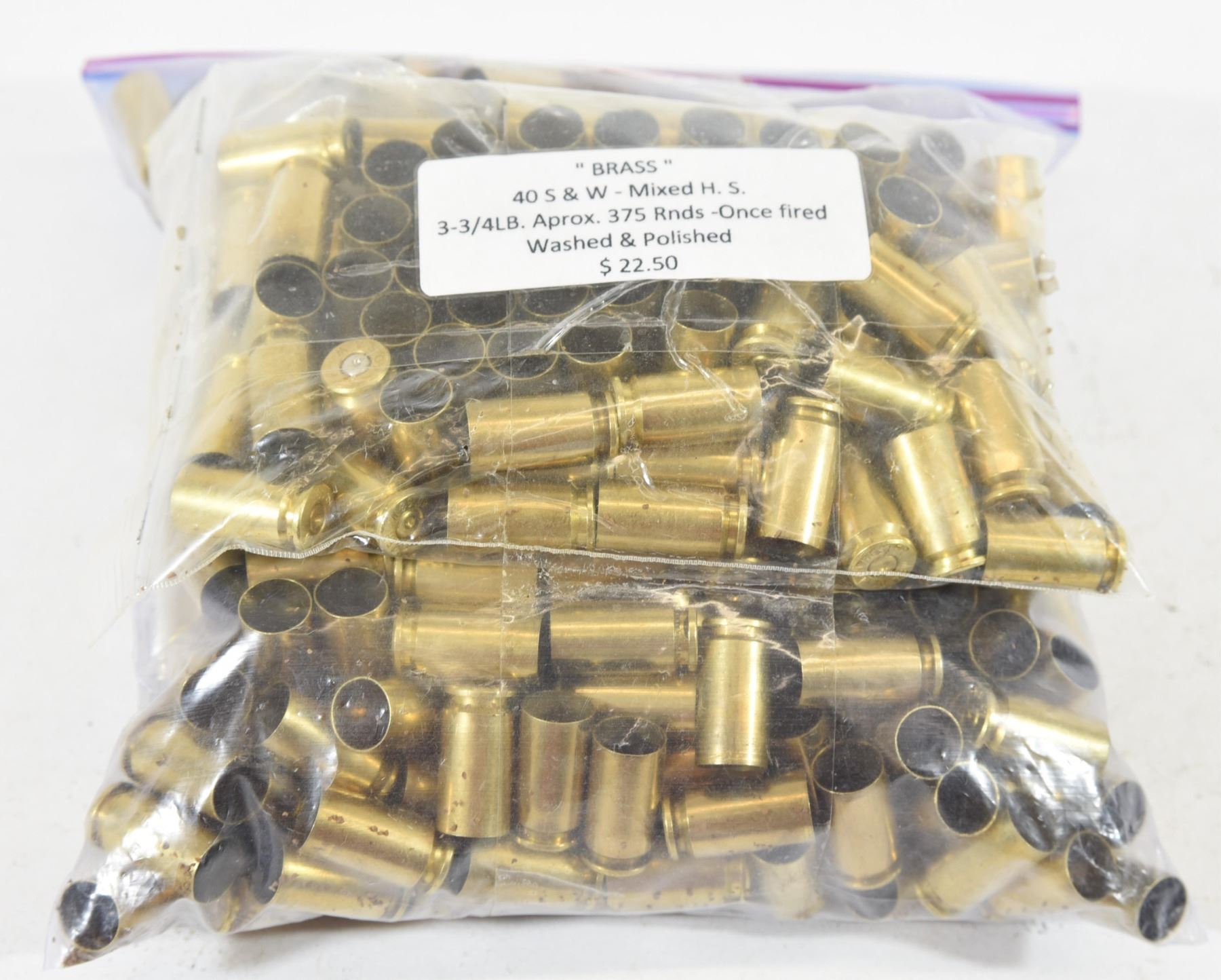 Approximately 375 pieces 40S&W brass once-fired, washed and polished.