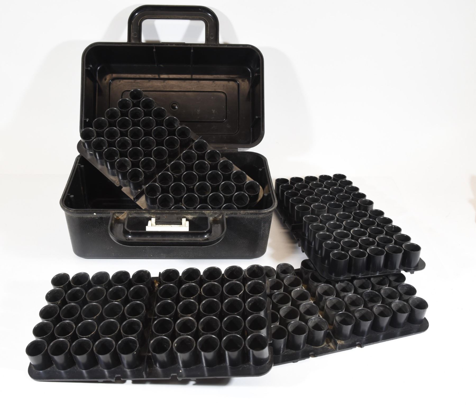 Four 12ga 50-round shell trays in plastic case.