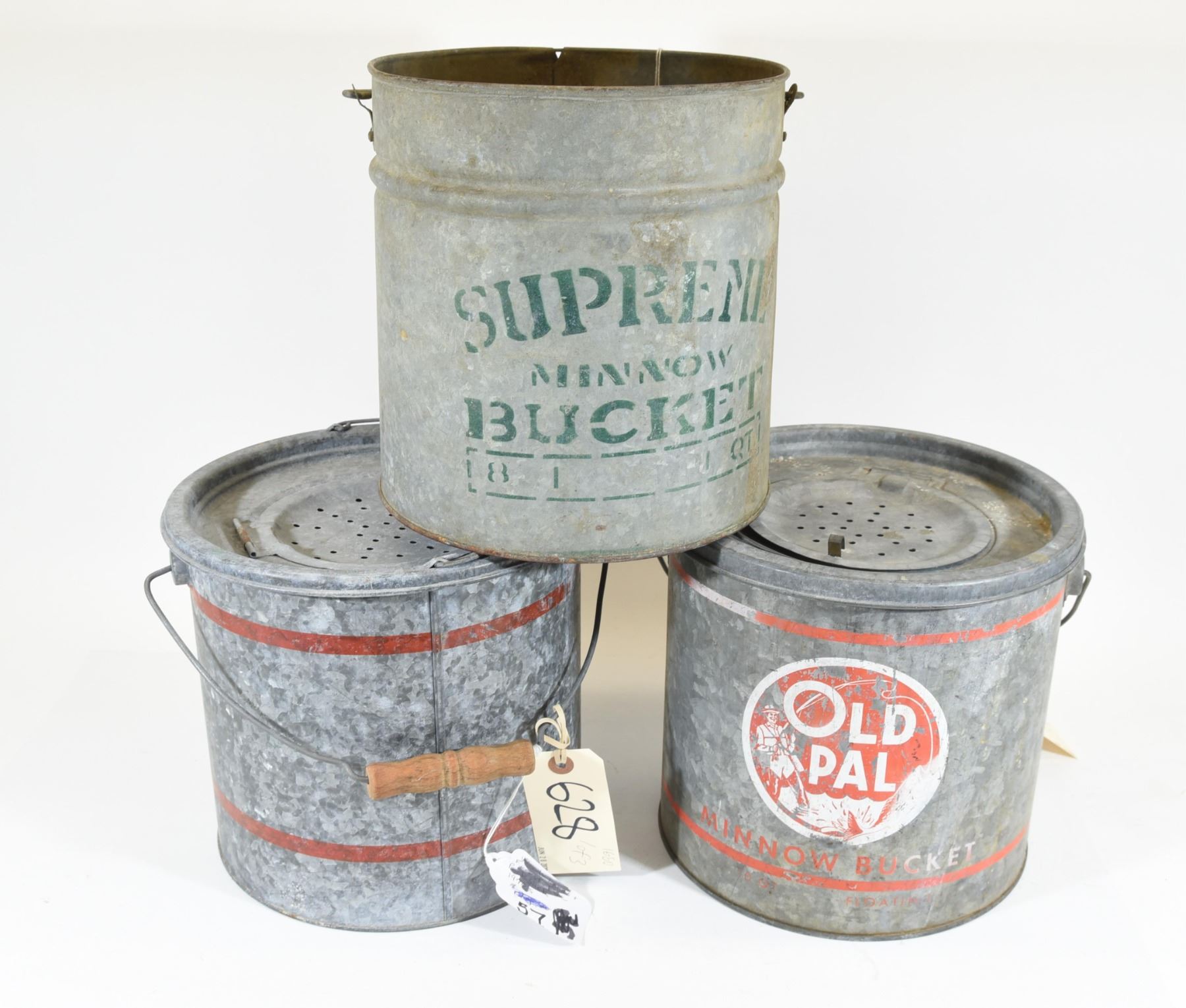 Lot 628 Three Vintage Minnow Buckets