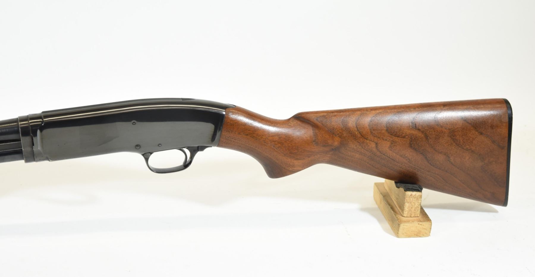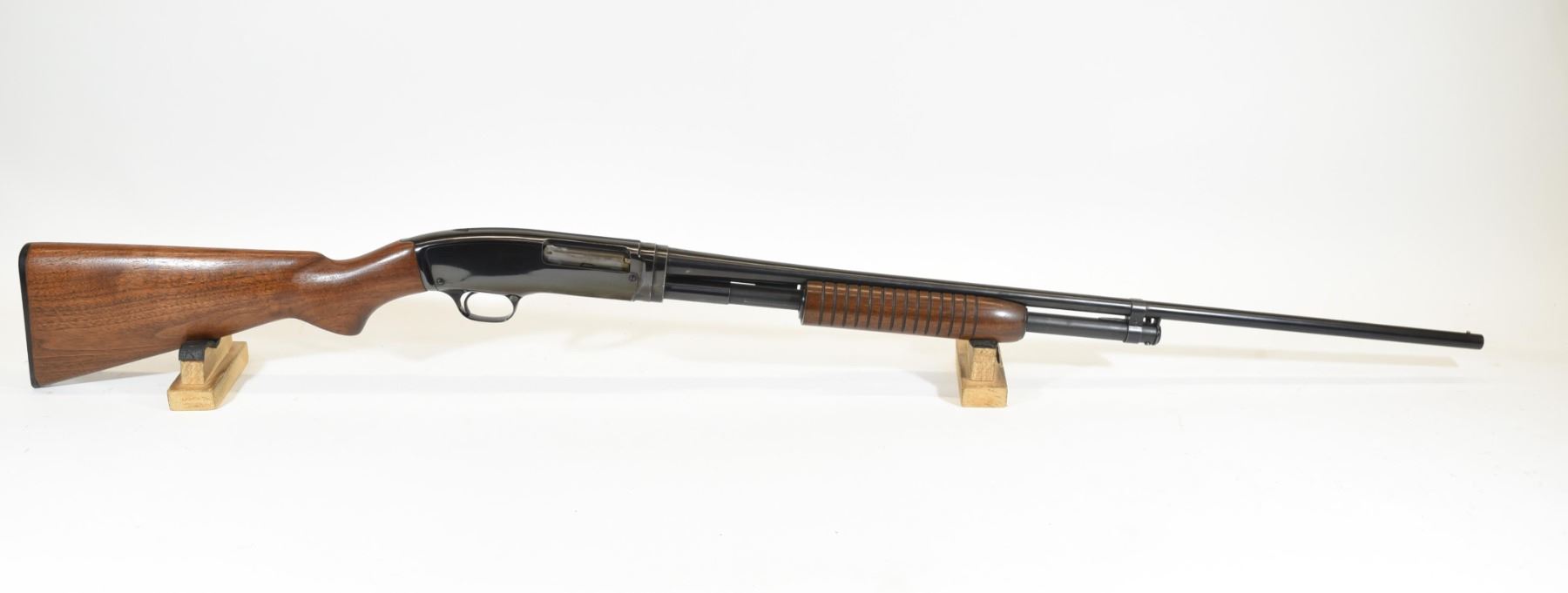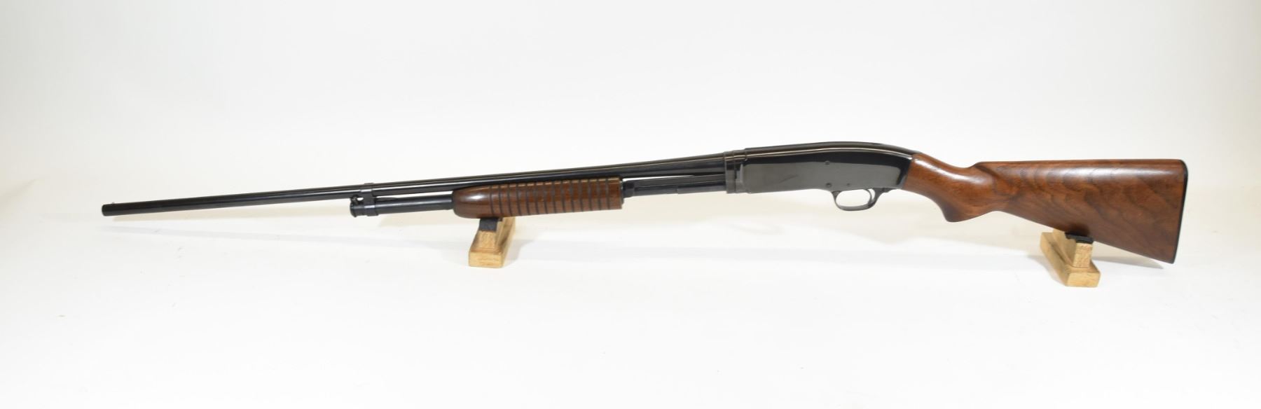 Non-restricted, pump action, 410ga 3", 27" barrel, SN 146882. Wood stock is in good condition with some very minor dents and scratches on the foregrip. Bluing is in good condition aside from a few very minor marks near the muzzle. Bore is good aside from two small scratches near the chamber.