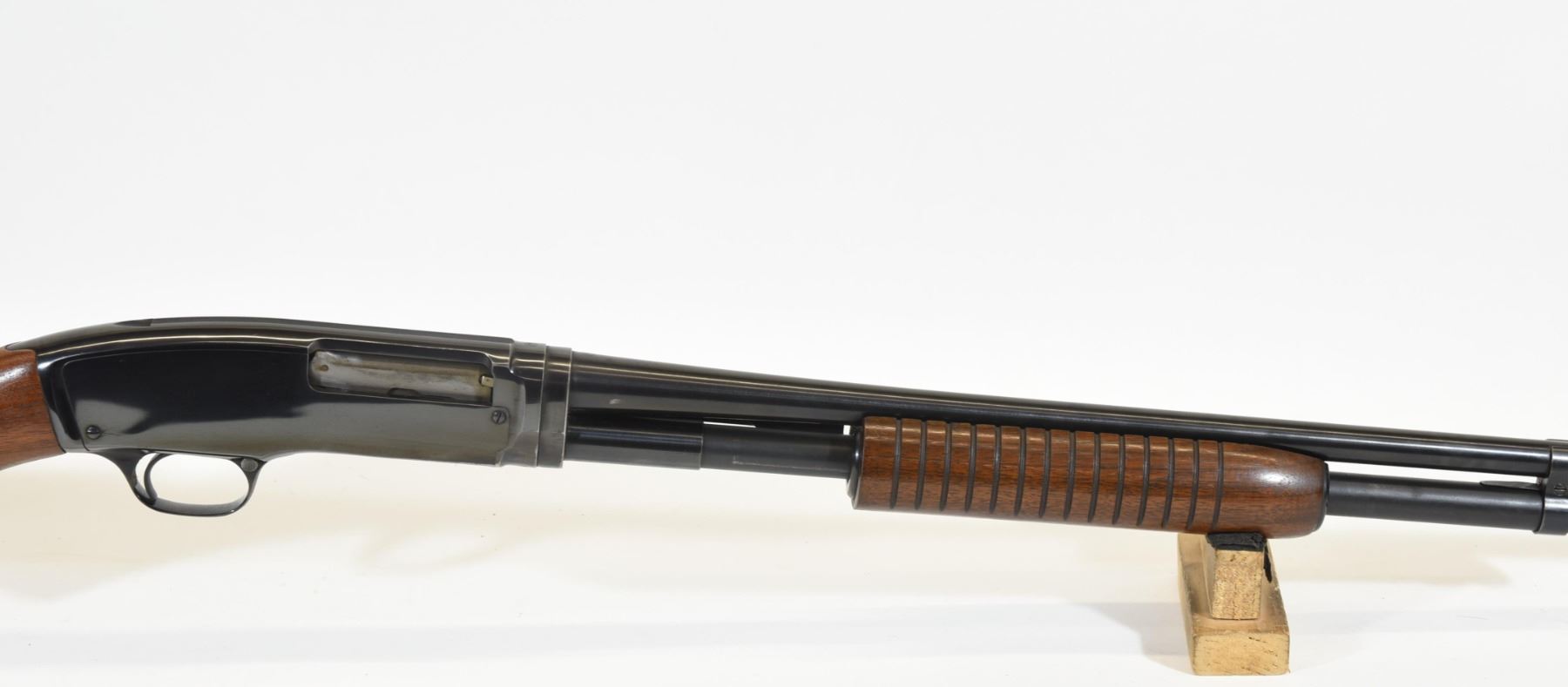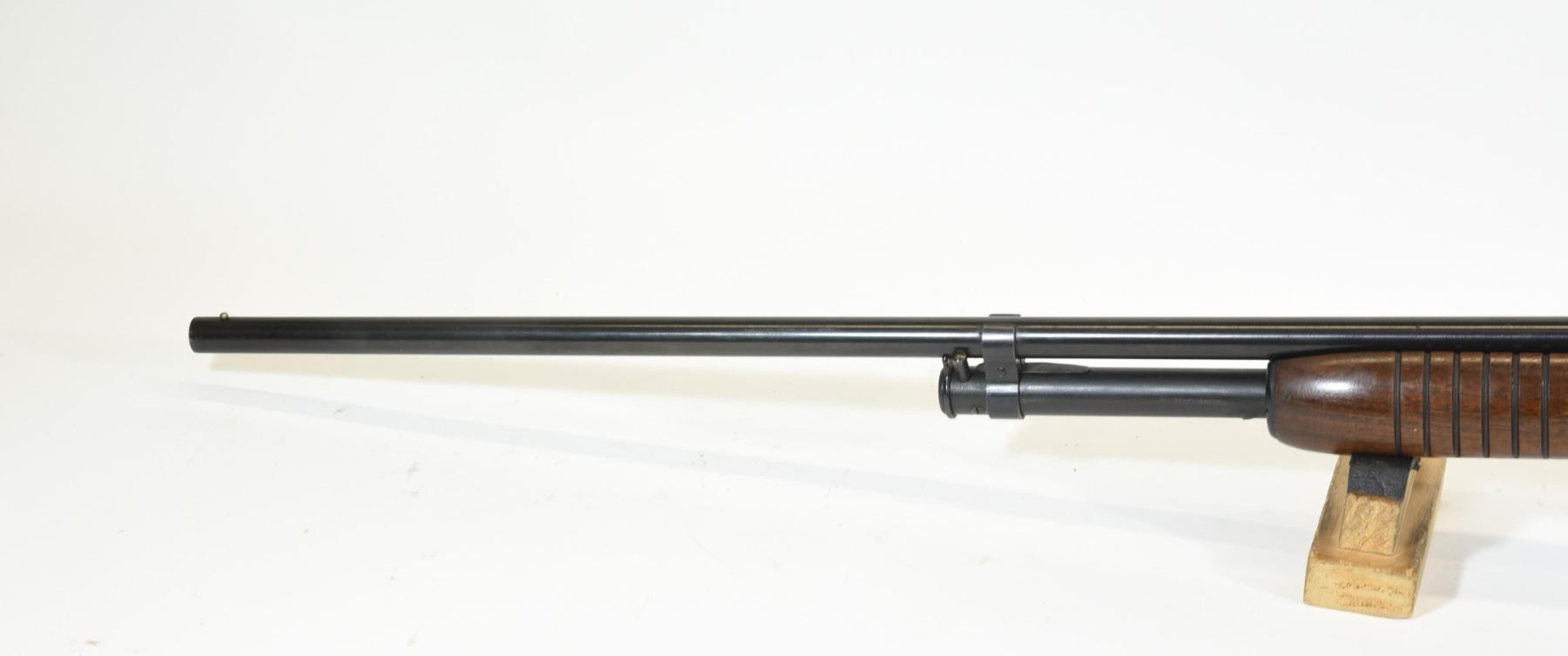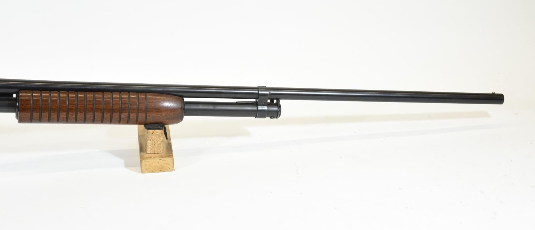 Non-restricted, pump action, 410ga 3", 27" barrel, SN 146882. Wood stock is in good condition with some very minor dents and scratches on the foregrip. Bluing is in good condition aside from a few very minor marks near the muzzle. Bore is good aside from two small scratches near the chamber.