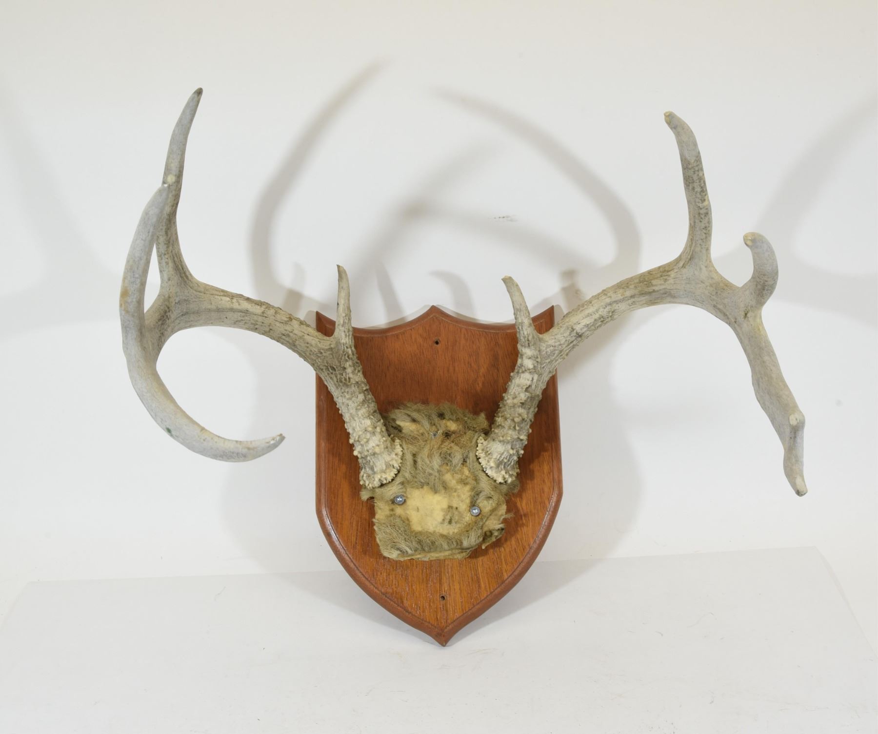 Lot 736 Deer Antler Mount on Wooden Plaque