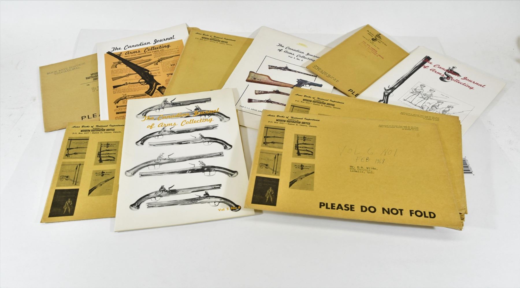 All are in the original shipping envelopes and some still have their stamps. The Canadian Journal of Arms Collecting Vol 5 No 1. The Canadian Journal of Arms Collecting Vol 5 No 2. The Canadian Journal of Arms Collecting Vol 5 No 3. The Canadian Journal of Arms Collecting Vol 5 No 4. The Canadian Journal of Arms Collecting Vol 6 No 1. The Canadian Journal of Arms Collecting Vol 6 No 2. The Canadian Journal of Arms Collecting Vol 6