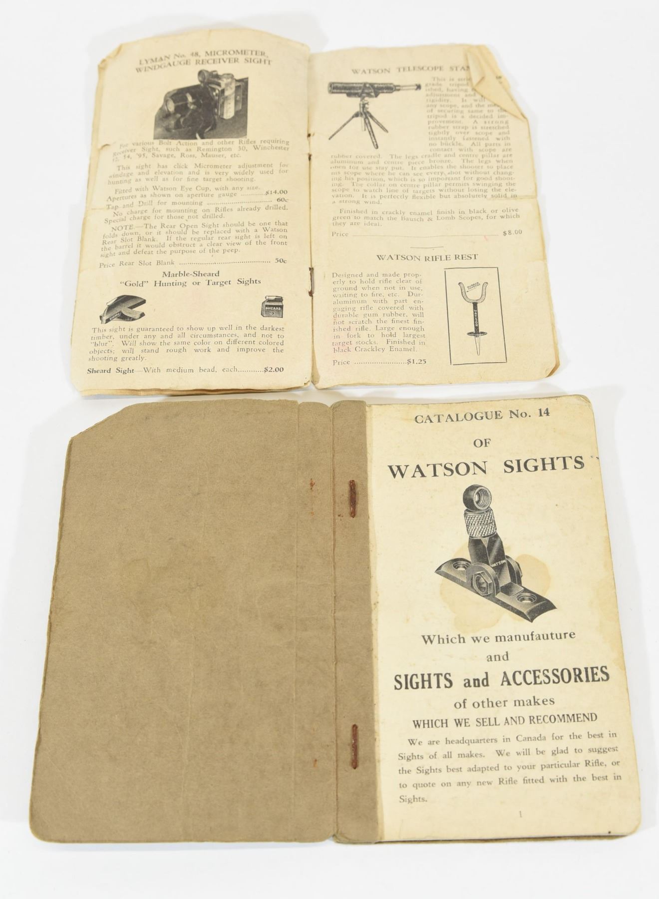 Watson Gun Sight Company Catalog No 14. Watson Gun Sight Company Catalog unknown number and missing some pages.
