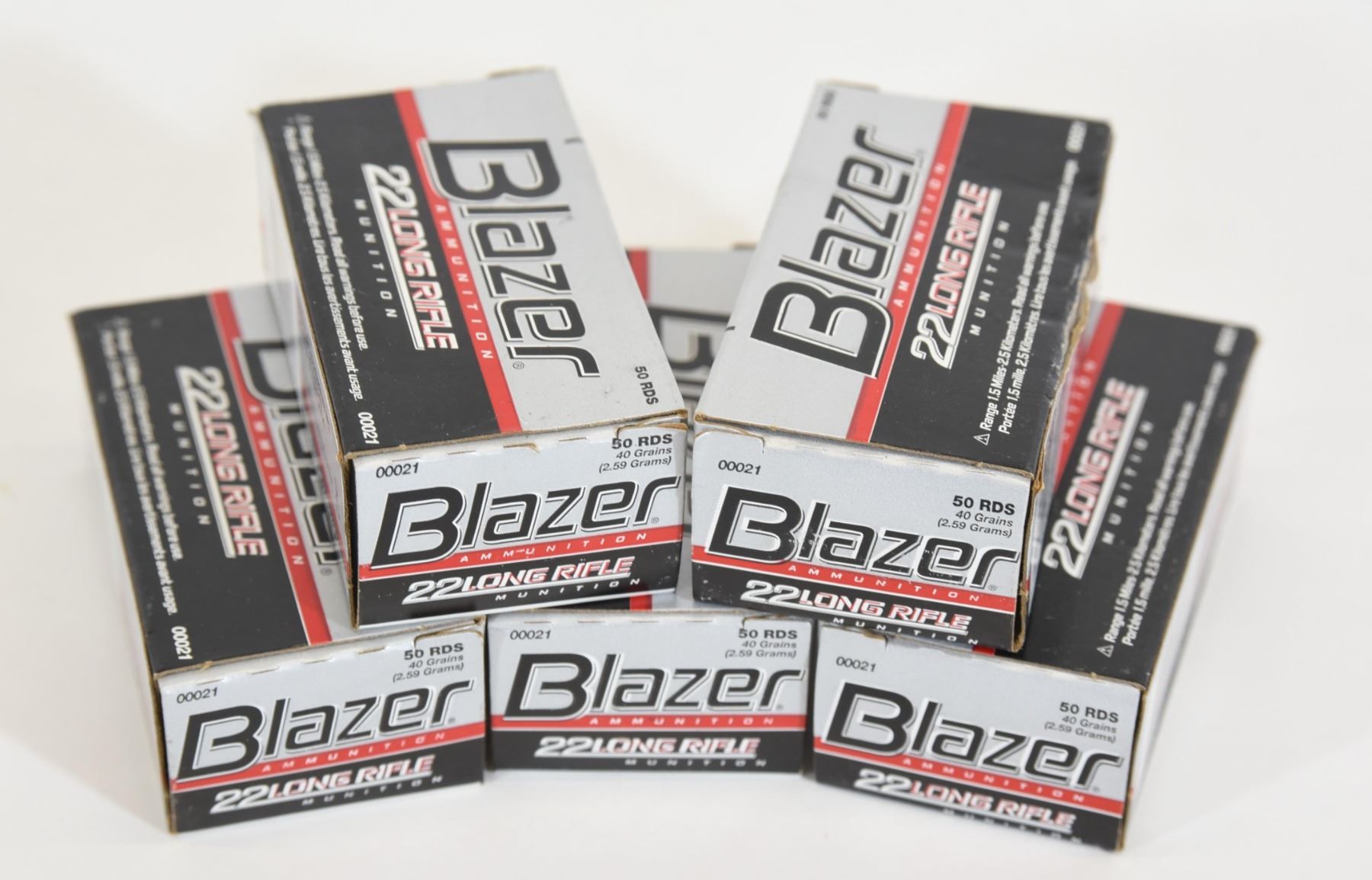 Four Blazer boxes with 50 rounds CCI 22LR ammunition. Blazer box with 45 rounds CCI 22LR ammunition.