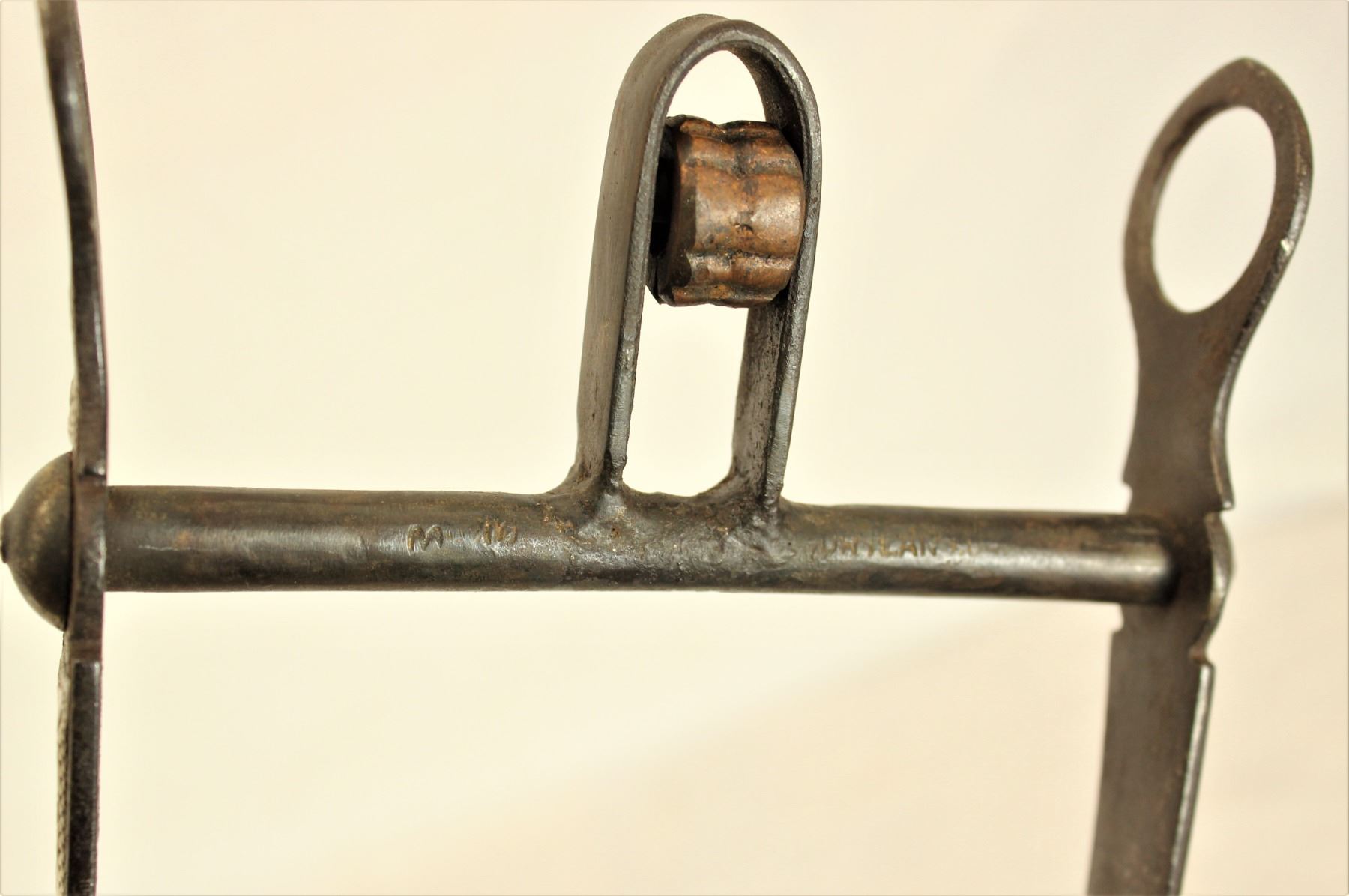 Appealing banana shank bit with nicely engraved silver and halfbreed mouthpiece.