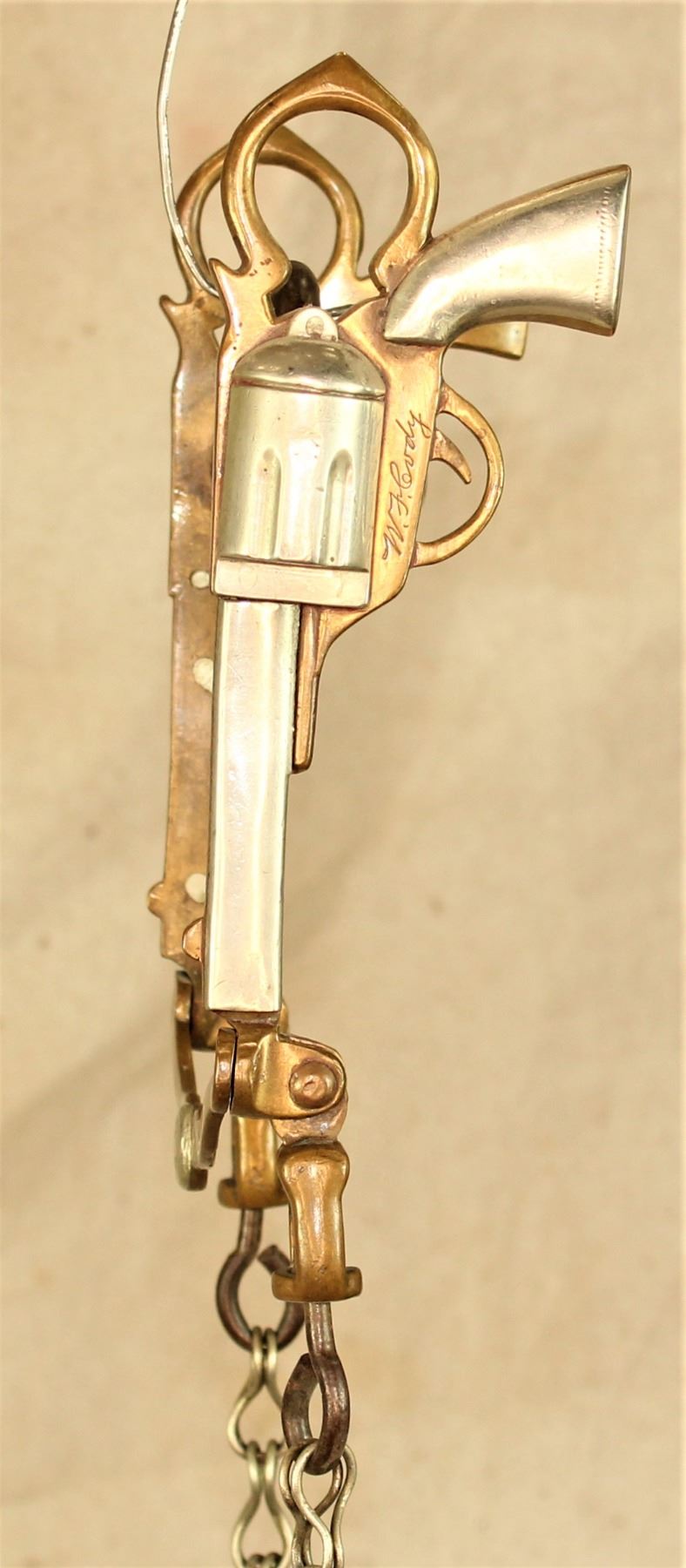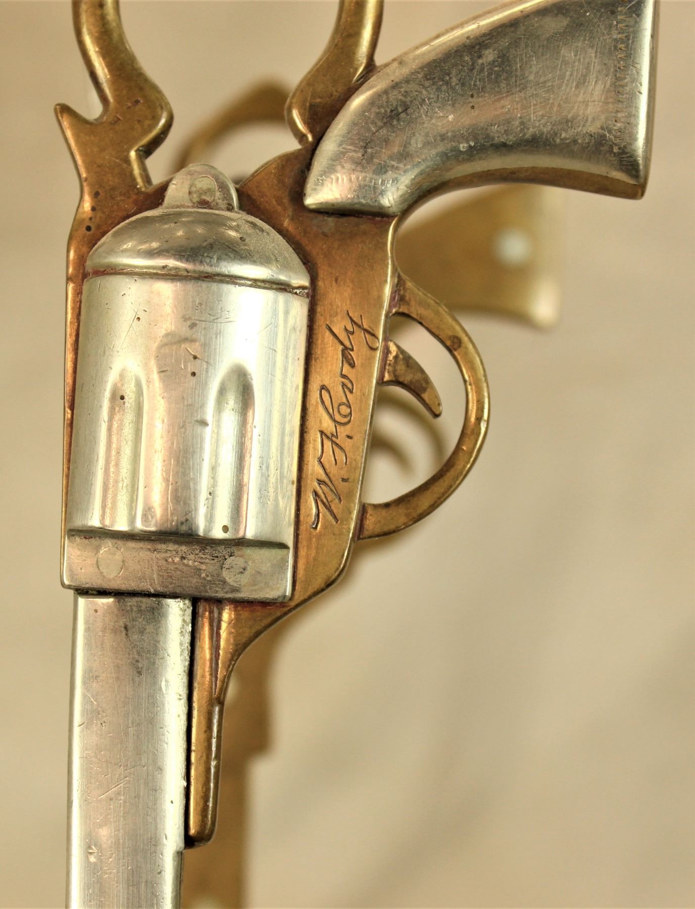 Scarce, nicely makers marked three dimensional hercules bronze pistol bit with "WF Cody" inscription. In crisp condition. Roger Wilmot Collection