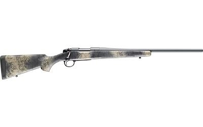 Bridging the gap between the B-14 and Premier Series, Bergara brings you the B-14 Wilderness Series. This series tackles the need for rifles that can withstand the rugged and unforgiving wilderness while blending into those very same elements - hence Bergara's hand-painted camouflage stocks with added webbing for increased texture and grip. All Wilderness Series barreled actions feature Sniper Grey Cerakote finishes for advanced protection in extremely harsh weather. The B-14 Wilderness Series features an American-style synthetic stock with SoftTouch finish. This rifle is also outfitted with a hinged floor plate. The world-renowned (#4) Bergara barrel is finished in Sniper Grey. The Wilderness is complemented by Bergara's super-smooth B-14 Action, which is a two-lug system with a sliding plate extractor and a coned bolt nose and breech to ensure smooth feeding and extraction of the cartridge.