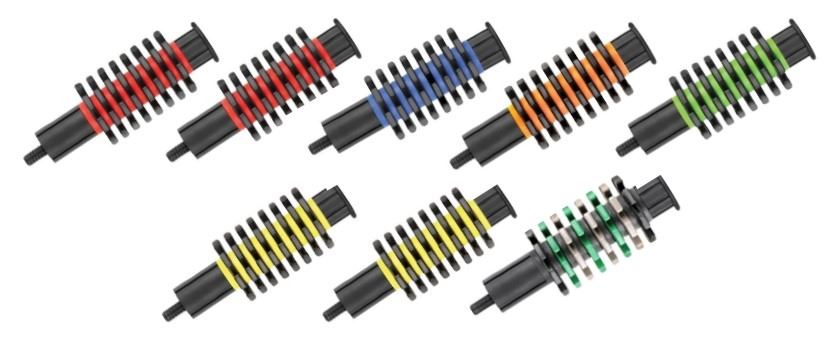 8 x Pine Ridge Sawtooth Stabilizers, Blue, Orange, Lime Green, Camo, 2-Red, 2-Yellow
