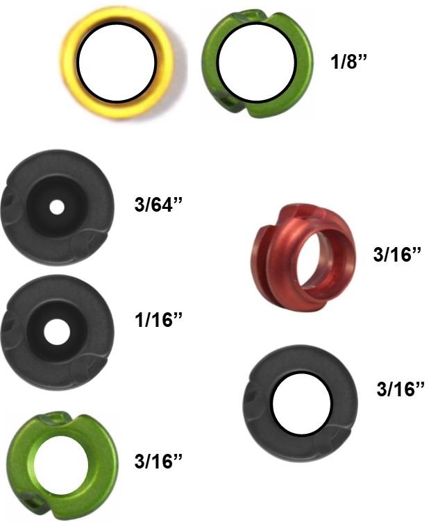 7 x Peeps, 4 x Clearshot Speed Peeps, 1-1/8 Gold, 1-1/8 Green, 1-3/16 Red, 1-3/16 Black, 2 x Jim Fletcher Tru Peeps, 1-3/64 Small, 1-1/16 Large, 1 x G5 3/16 Meta Peep Green