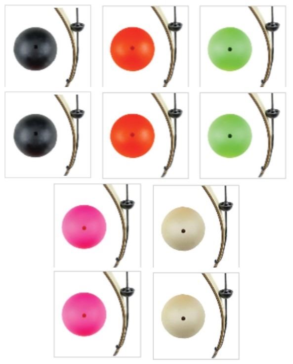 10 x Pine Ridge Archery Brush Buttons 2/pk, 2-Black, 2-Red, 2-Lime Green, 2-Pink, 2-Tan