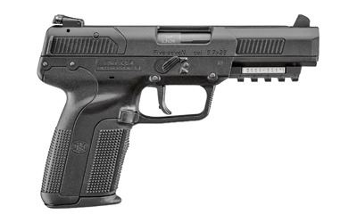 The FN Five-seveN pistol was developed in the early 1990s and features a cold hammer-forged barrel that is chrome-lined for extended service life. The polymer-framed FN Five-seveN offers single-action operation, low felt recoil, 20-round magazine capacity, and is equipped with an ambidextrous, forward-mounted manual safety, and an accessory rail that accepts tactical lights and lasers.