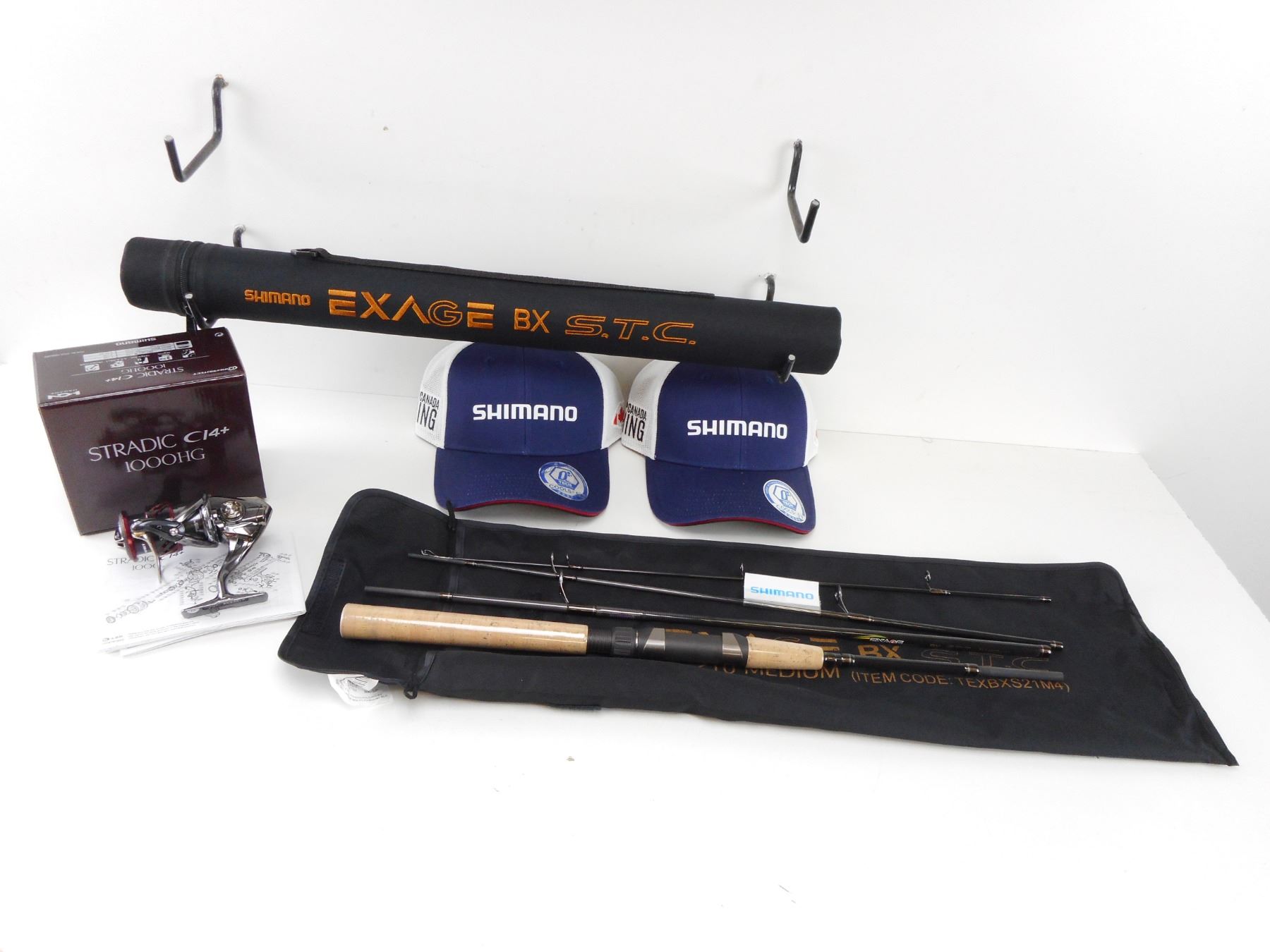 THIS LOT IS NEW AND CONSISTS OF A SHIMANO EXAGE BX S.T.C (SHIMANO TRAVEL CONCEPT) ROD. THE REEL IS A SHIMANO STRADIC C14+ 1000HG. IT ALSO COMES WITH TWO SHIMANO HATS. THIS ITEM WAS GENEROUSLY DONATED BY SHIMANO.