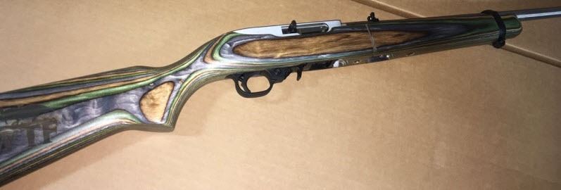 Lot 57 Ruger 1022 Take Down Grn LaminateSS Bbl Logo Tan Bag 18.5