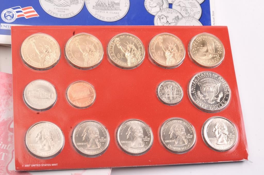 Lot of U.S. Mint uncirculated coin sets from 1973 to 2007, including twenty six total sets. 1999, 2000, 2001, 2002, 2003, 2004 and 2007 include both Philadelphia and Denver sets. All the coins are new and uncirculated in the original packaging. Est.: $150-$300.