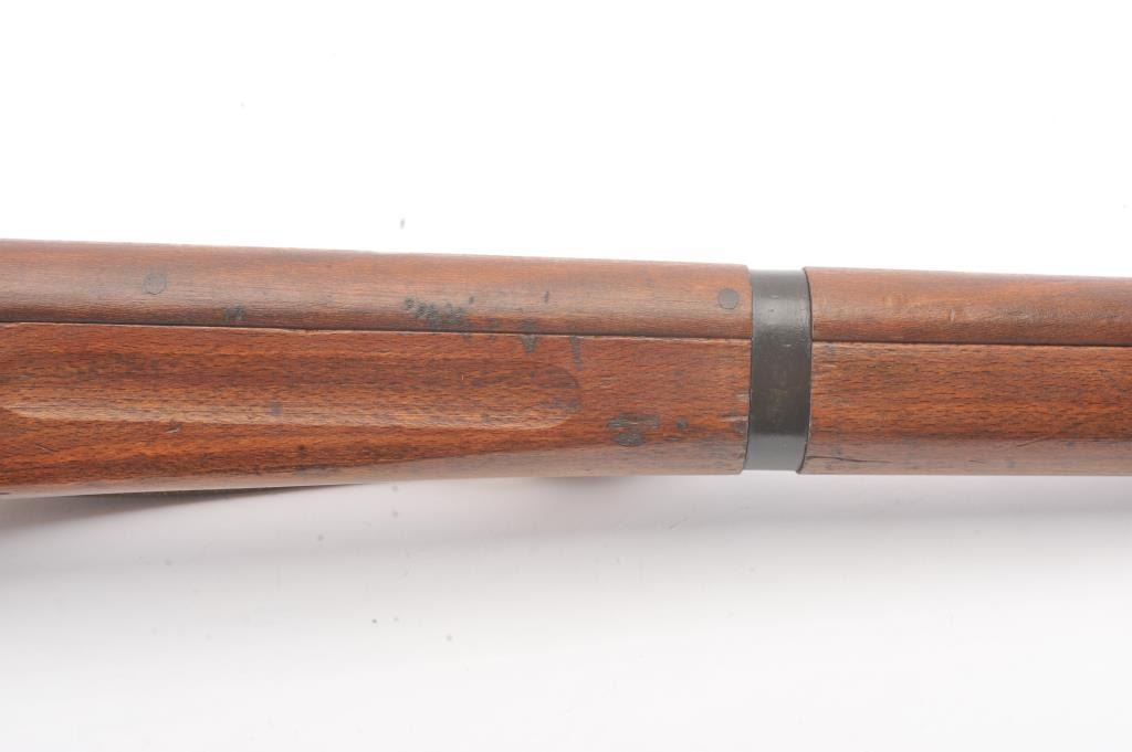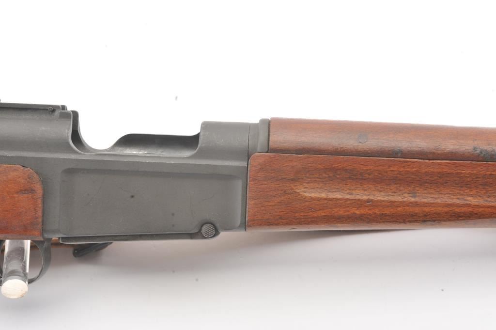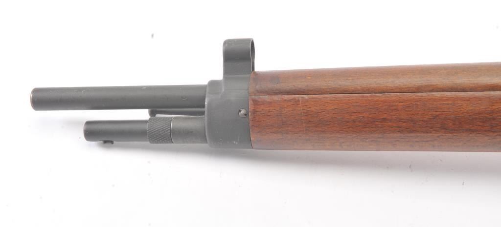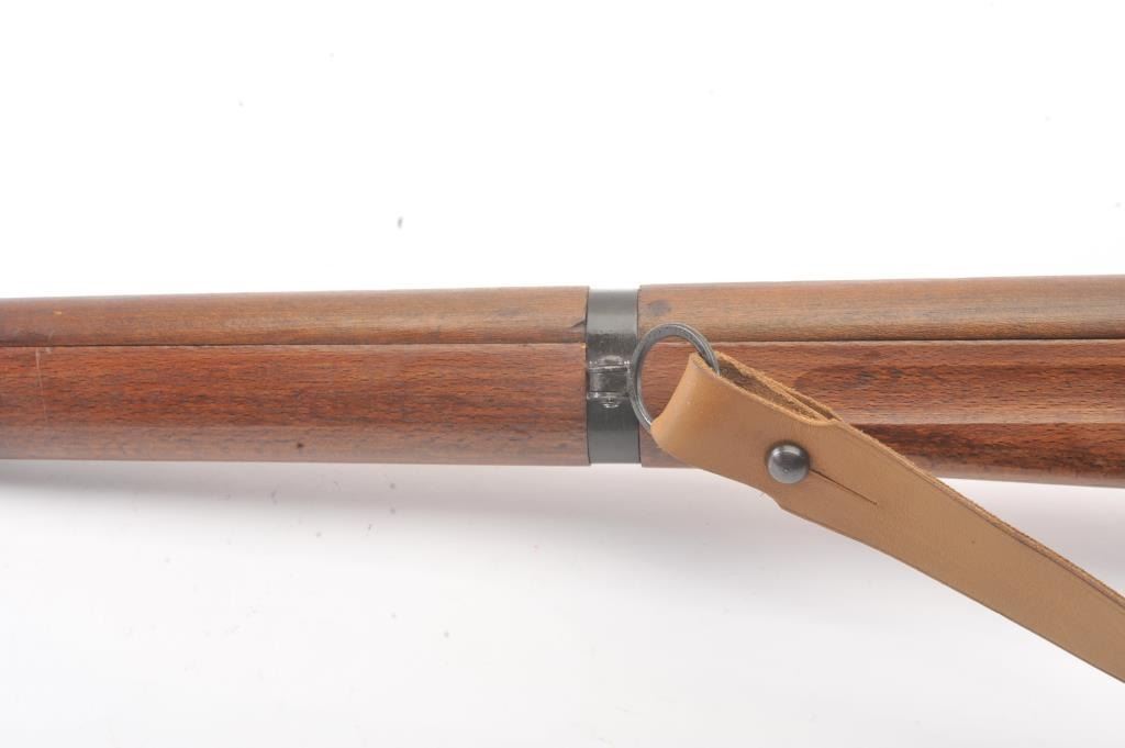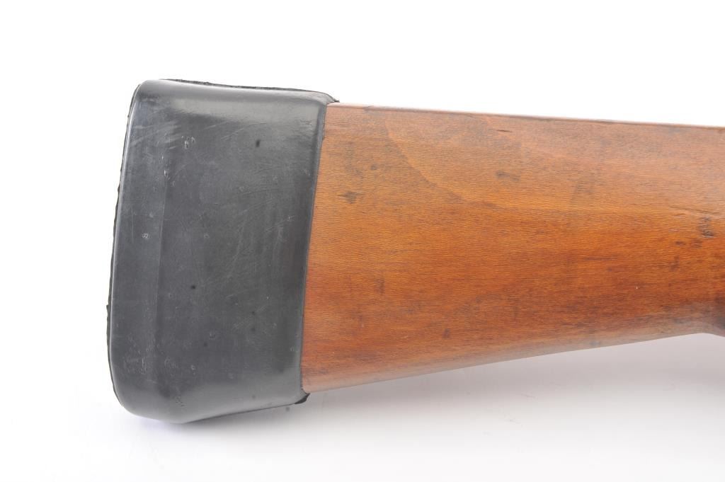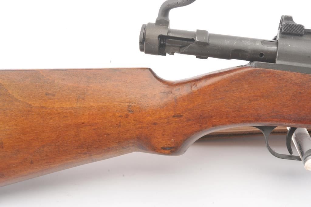 French MAS 36 bolt action rifle, 7.5 French caliber, Serial #G56862. The rifle is in very good to nearly fine overall condition with a 23” barrel. The rifle retains nearly all of the military finish with wear at themuzzle and high point edge wear consistent with service use. The left side of the receiver is import marked and dated 1936. The smooth wood stock is in very good condition with mars and bruising, a periodleather sling and slip-on rubber recoil pad. The bore is fair, the action is crisp and the markings are sharp. The lot includes 25 pieces of new brass with the Graf’s head stamp and a set of RCBS loading dies. A nice lot for the MAS shooter. Est.: $350-$700. (C+R).