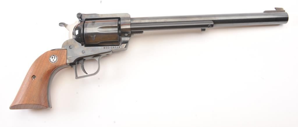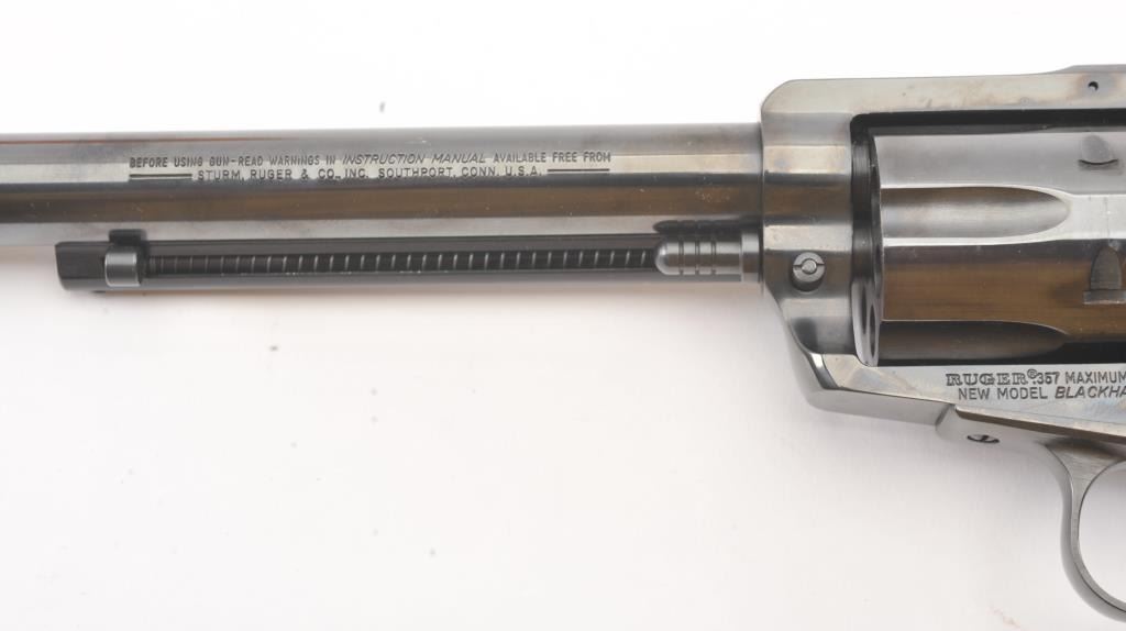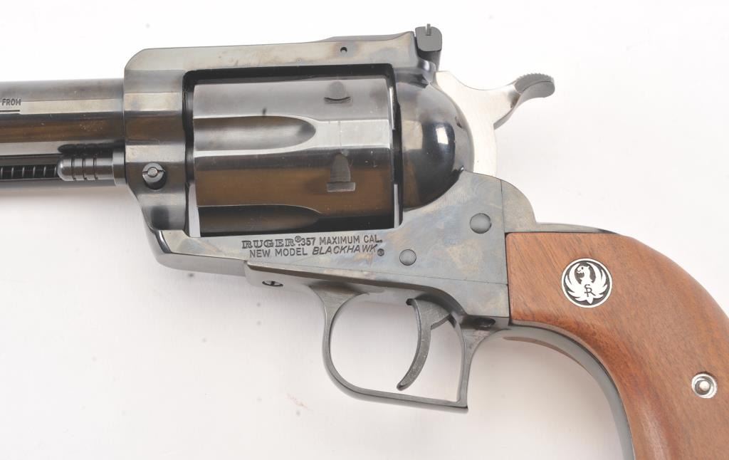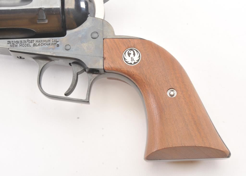 Ruger Blackhawk in .357 Maximum caliber Revolver with a 10 1/2" barrel, S/N 600-08746. Fine to excellent condition in box. Minor firing and use. 98%-99% overall. (Modern/PPT) Est.: $350-$700