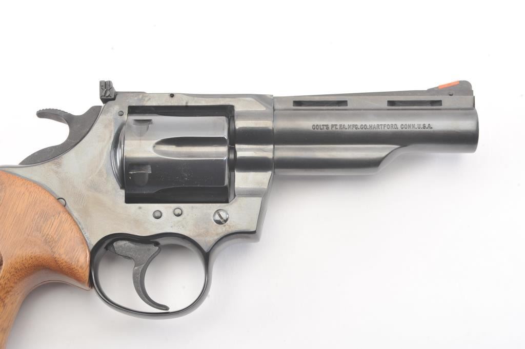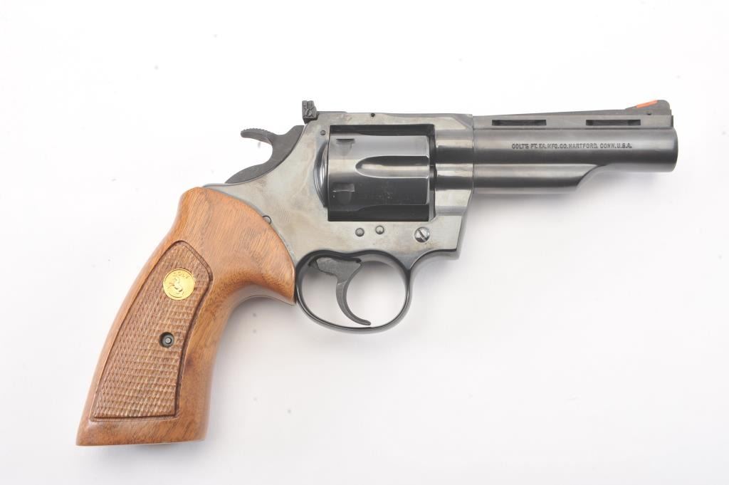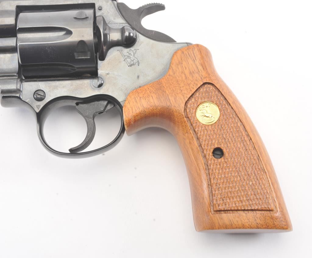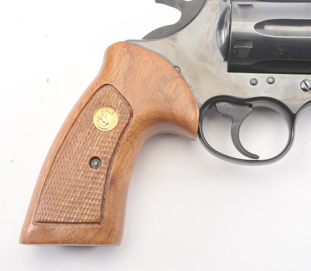 Trooper MK5 Double Action Revolver in .357 Mag. caliber with a 4" barrel, blued finish, and box, S/N 184687. Excellent to mint showing no signs of use just possibly test firing. 99% to mint with tag andinstructions. Vent rib. (Modern/PPT) Est.: $600-$1200