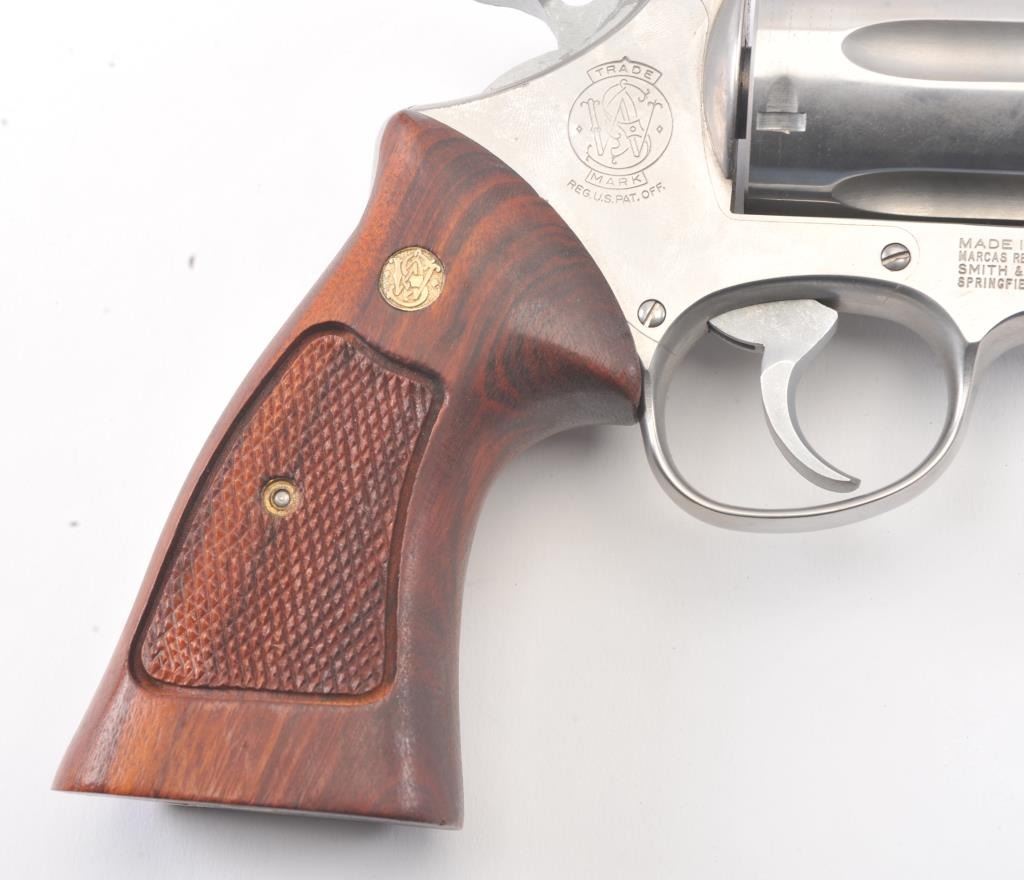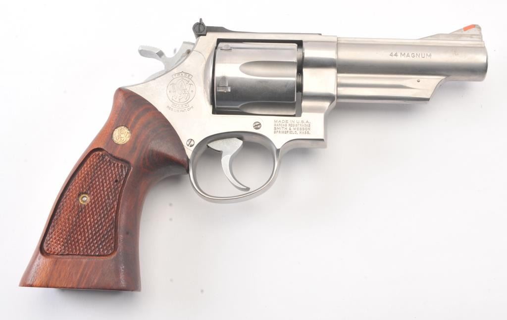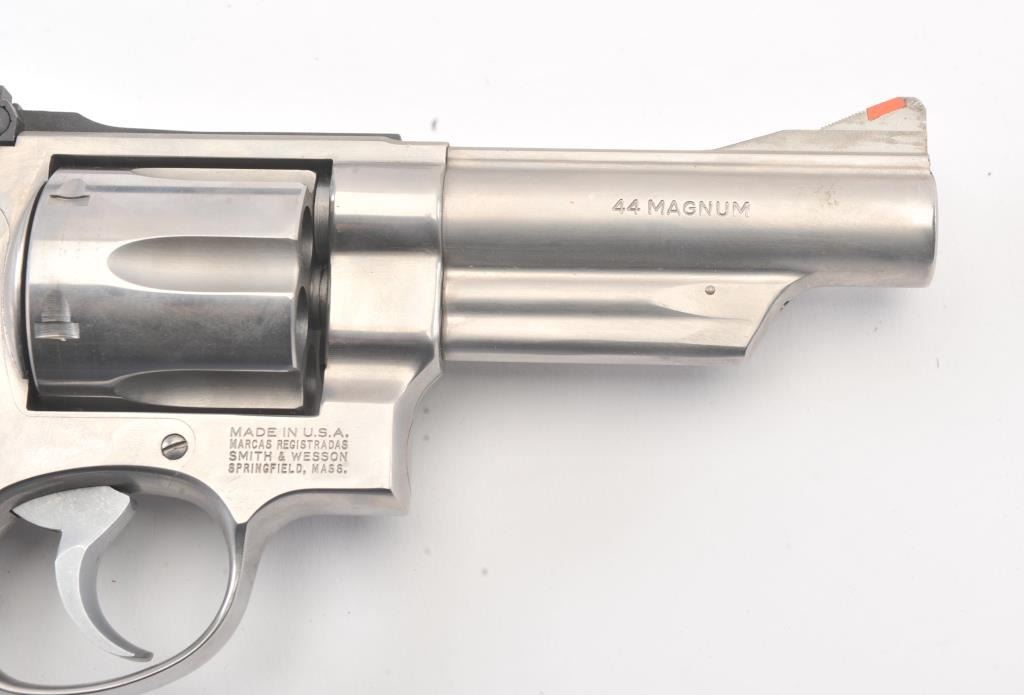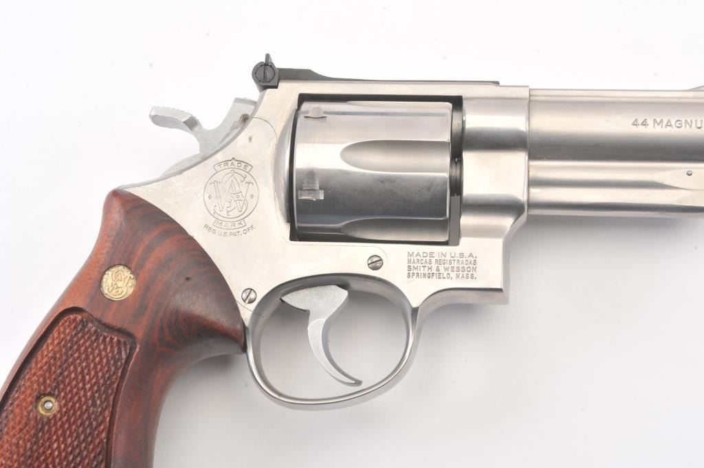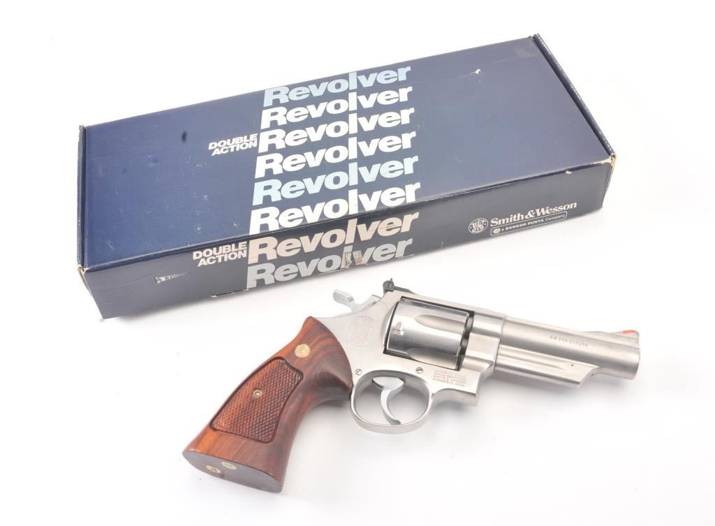 Smith & Wesson 629-1 Double Action Revolver in .44 Mag. caliber with a 4" barrel in stainless steel, S/N N938141. Fine used condition showing slight used. In box. (Modern/PPT) Est.: $600-$1200