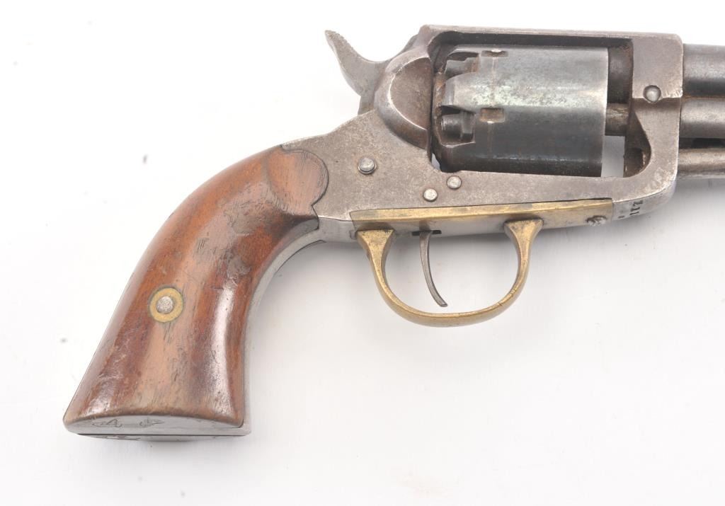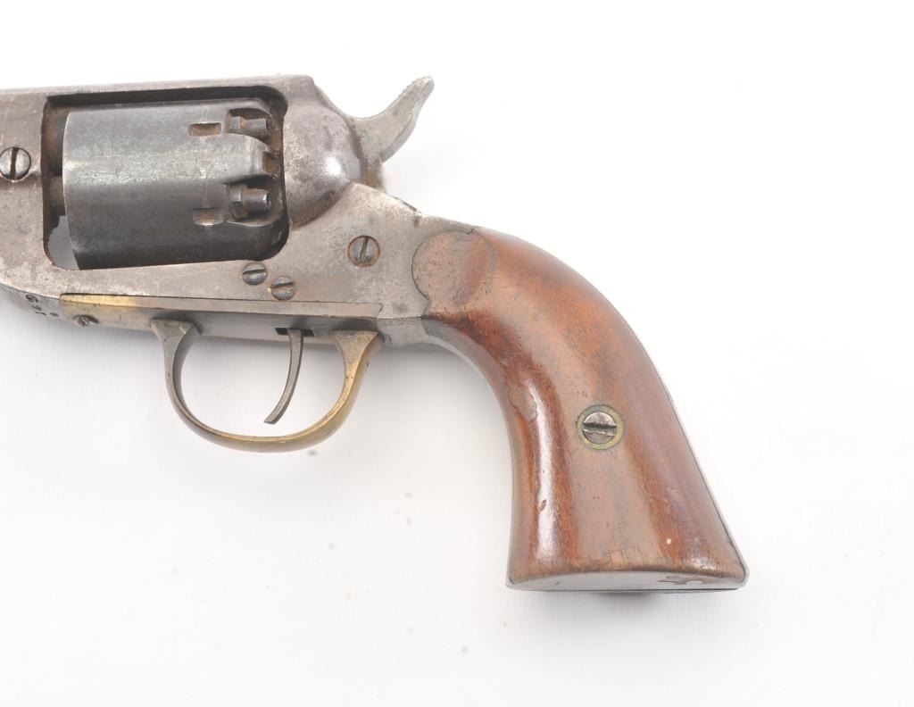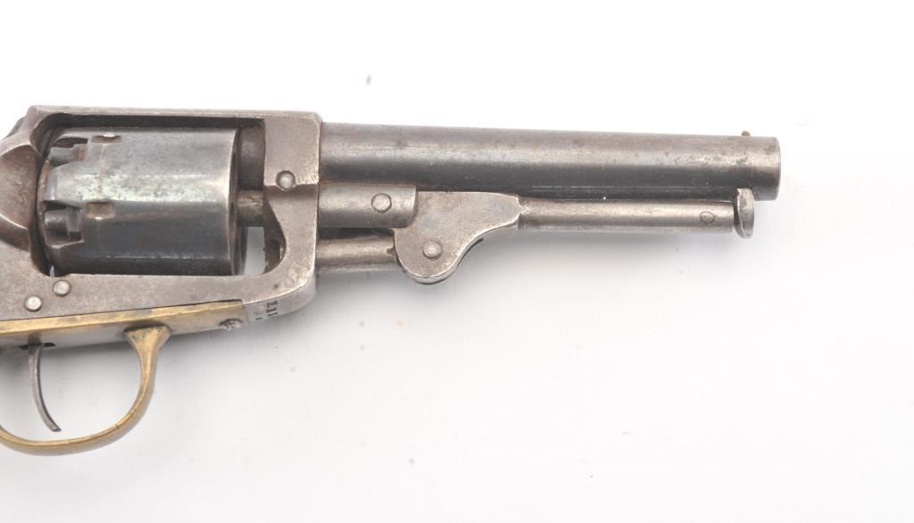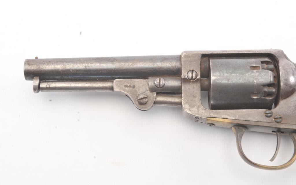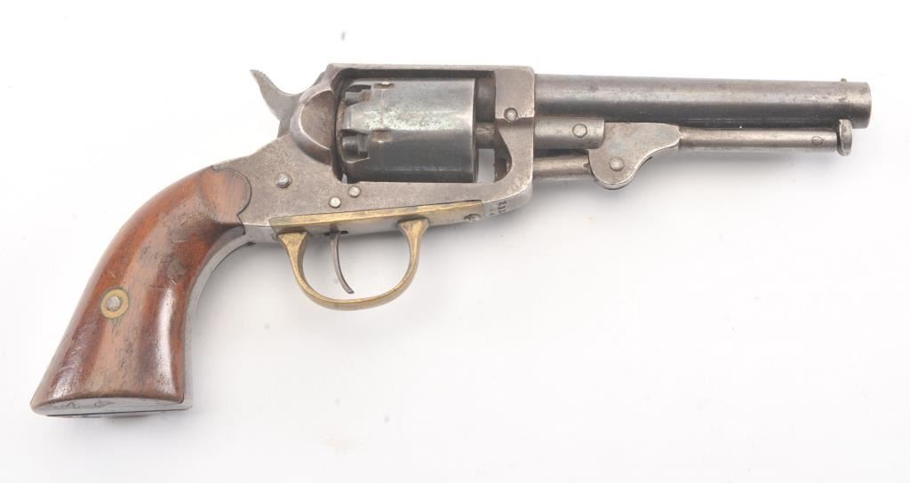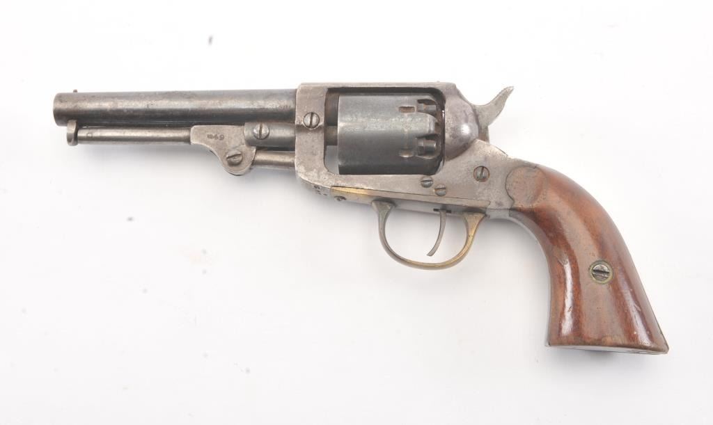 Union Arms Co. .31 caliber pocket revolver with 30%-50% original blue remaining. #549 on the lever. Very good overall including grips. Minor rust. As found. Civil War era. (Antique) Est.: $400-$800