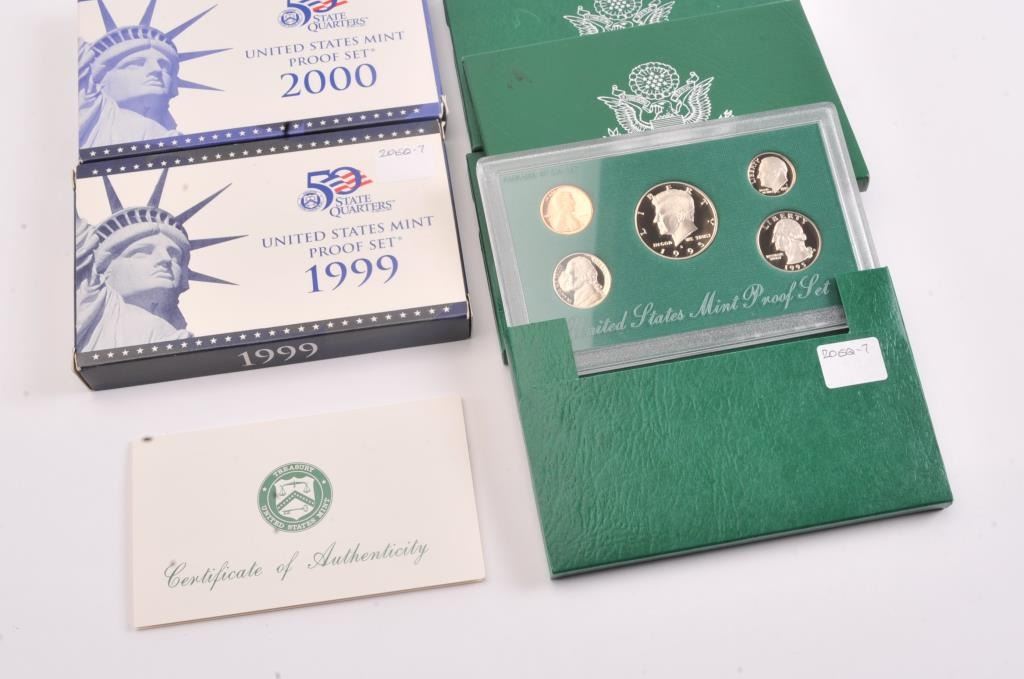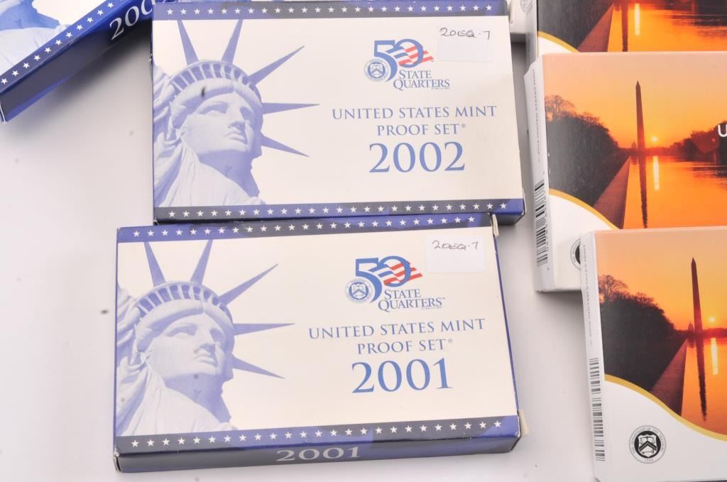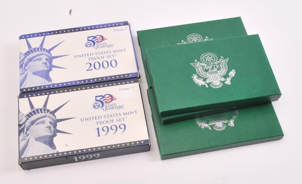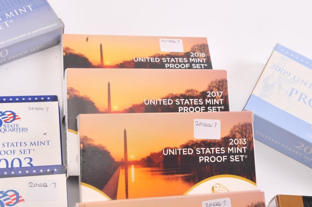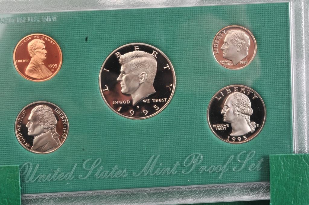 Lot of U.S. Mint Proof coin sets from 1995 to 2007, 2009, 2010, 2011, 2013, 2015, 2017, 2018 and 2019. The lot includes twenty two sets in total. All the coins are new and uncirculated in the original packaging.Est.: $200-$400.