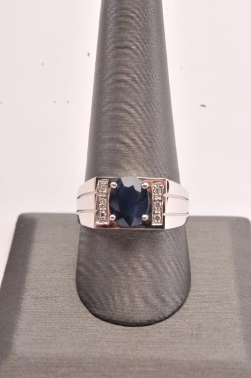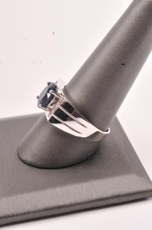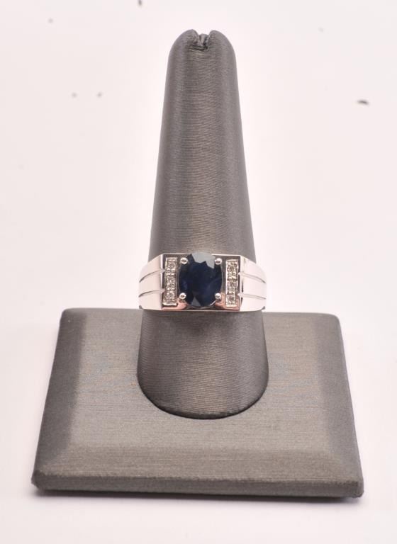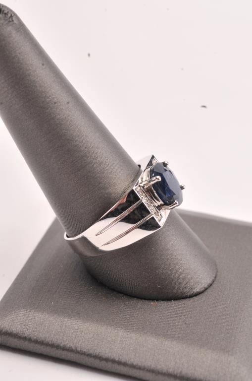 Burmese Sapphire & Diamond ring set in 18k white gold. Sapphire is oval cut and approx. 3 carats. Est:$1000-2000