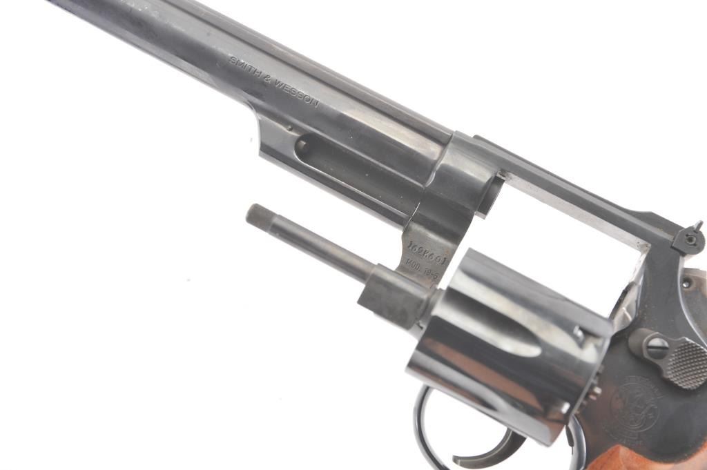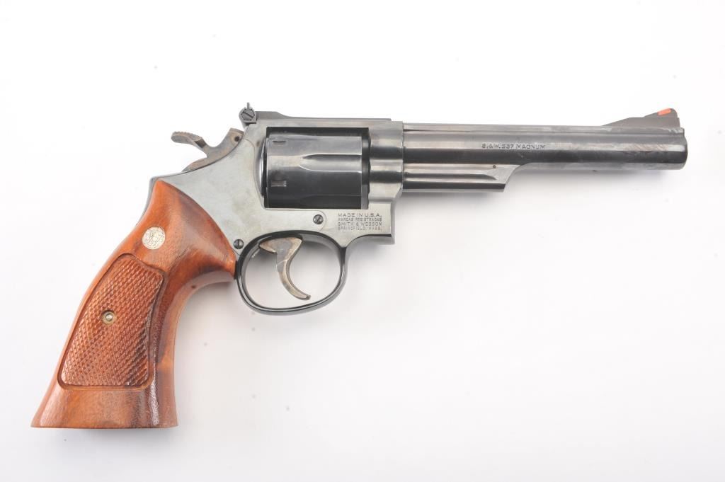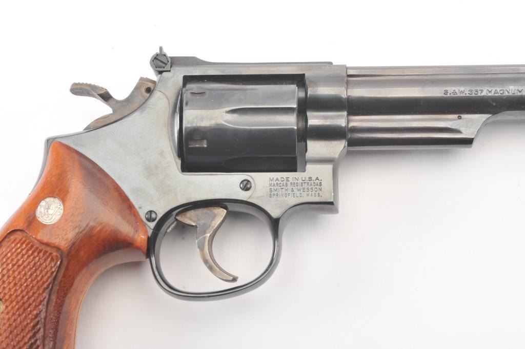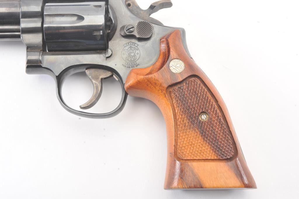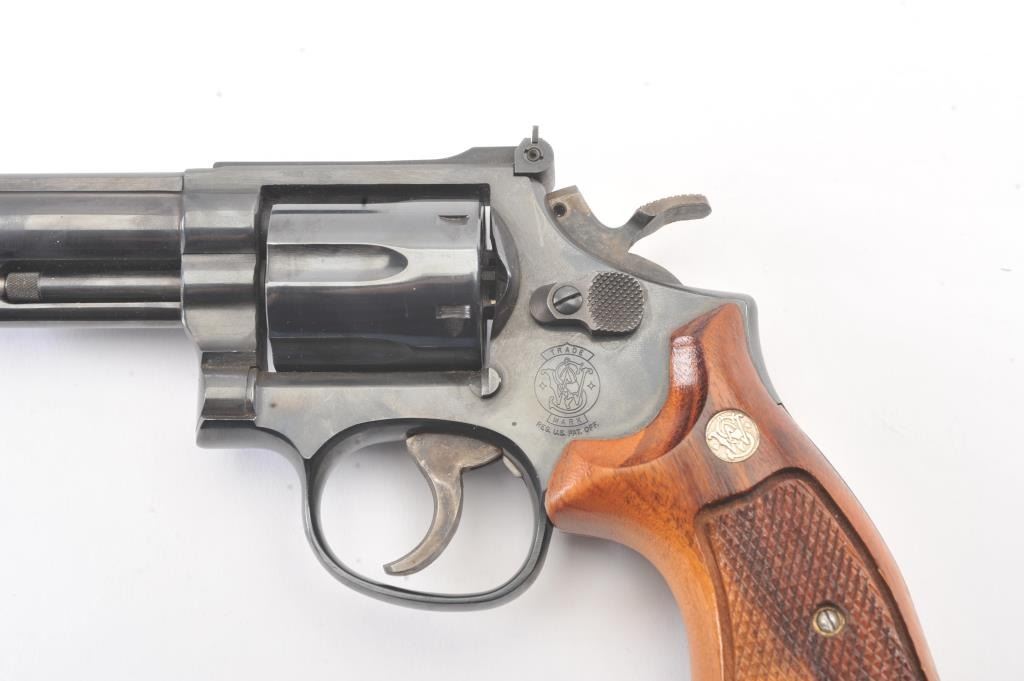 Smith & Wesson Model 19-5 Double Action Revolver in .357 Mag. with a 6" barrel, blued finish, and non-matching box, S/N 169K601. Limited firing and use. Needs cleaning from storage in an estate. 97%-99% overall.(Modern/PPT) Est.: $400-$800