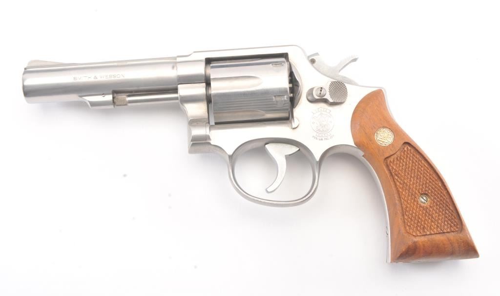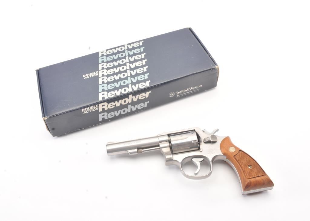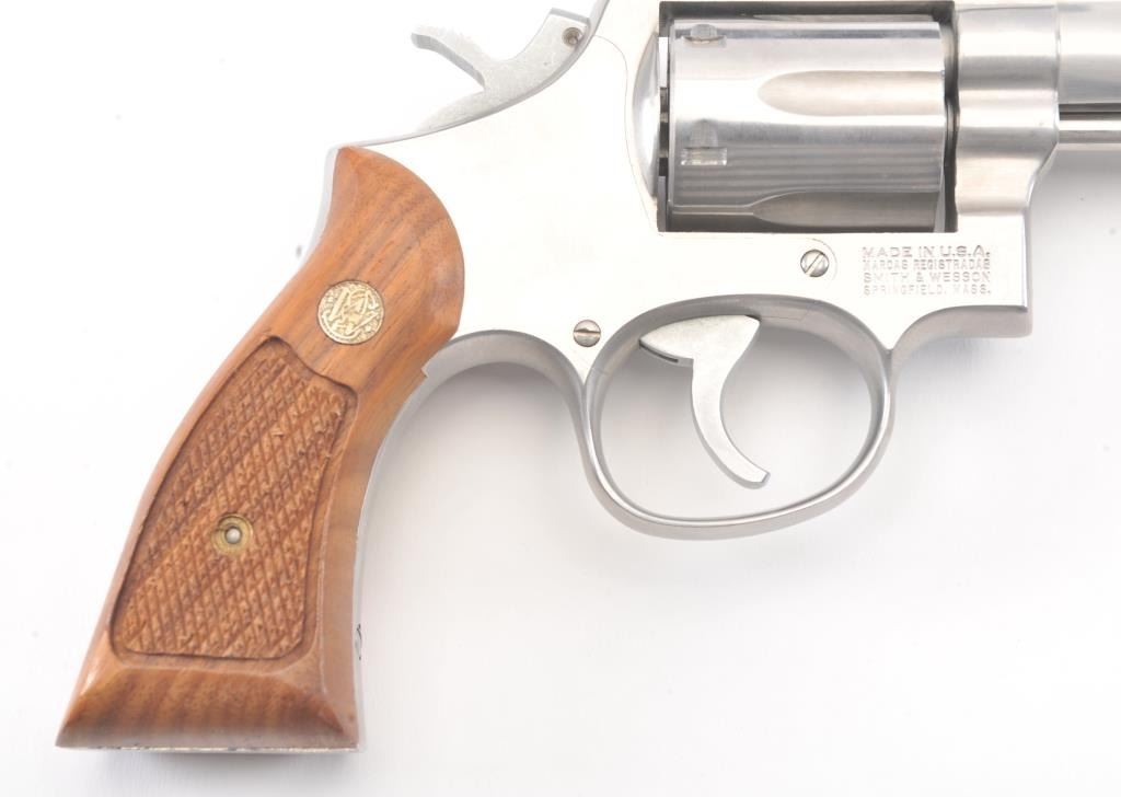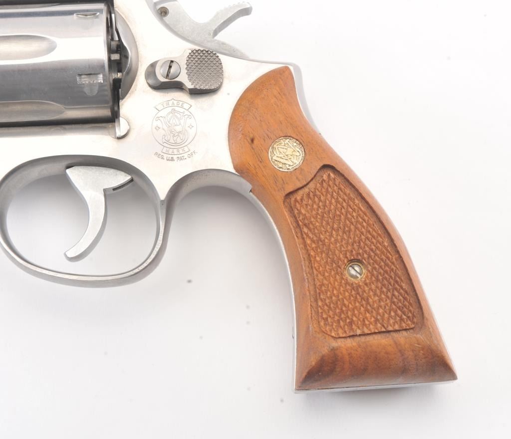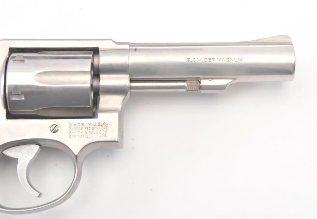 Smith & Wesson Model 65-3 Double Action Stainless Steel Revolver in .357 Mag. caliber with a 4" slightly heavy barrel, S/N 30D3771. Fine to excellent used condition in the box. Limited firing and use. The gripsare dry from storage. (Modern/PPT) Est.: $400-$800