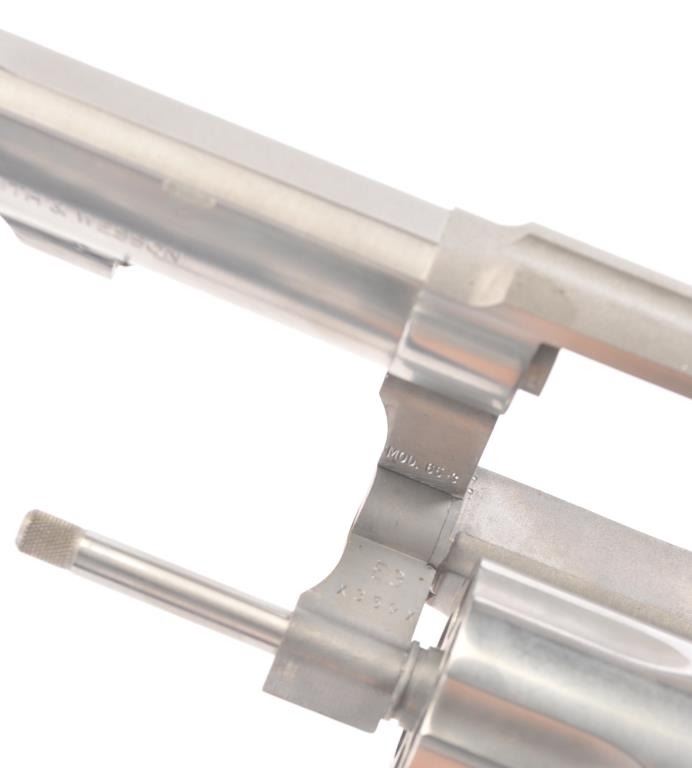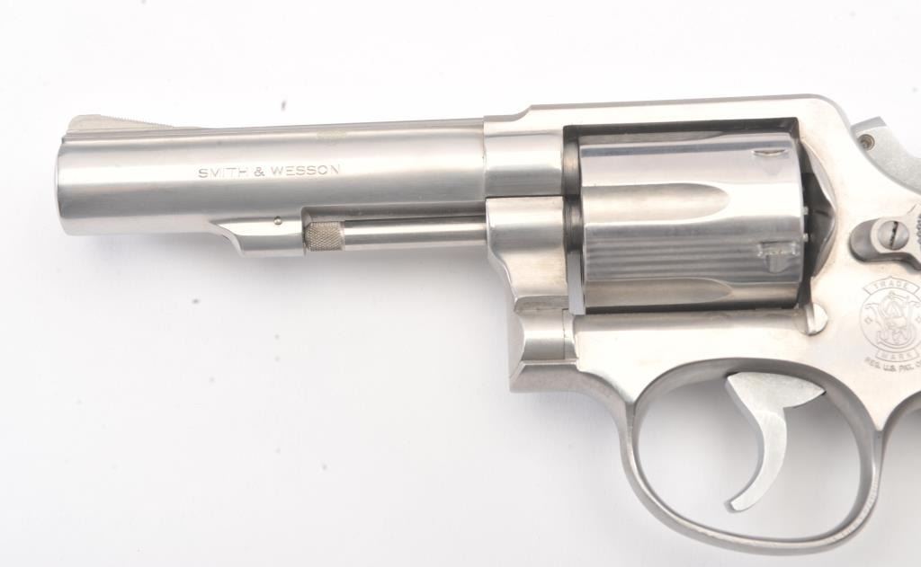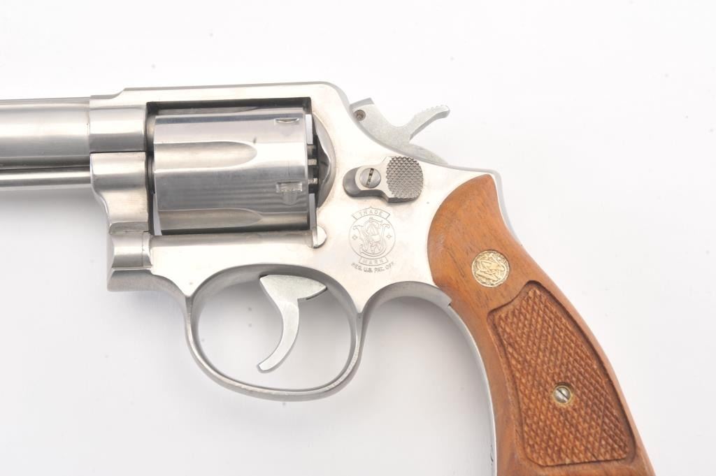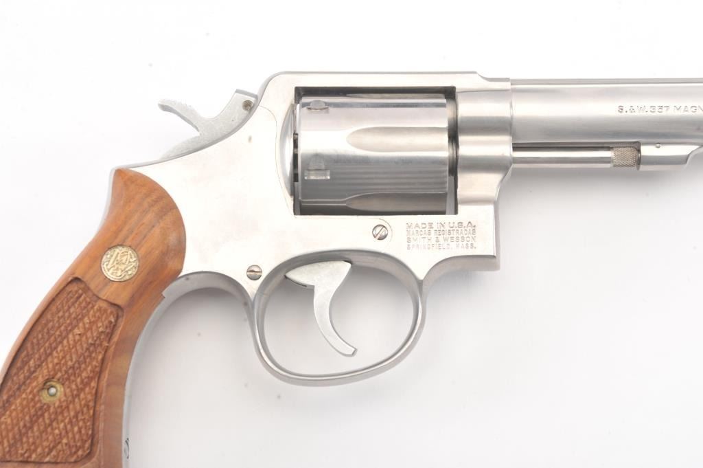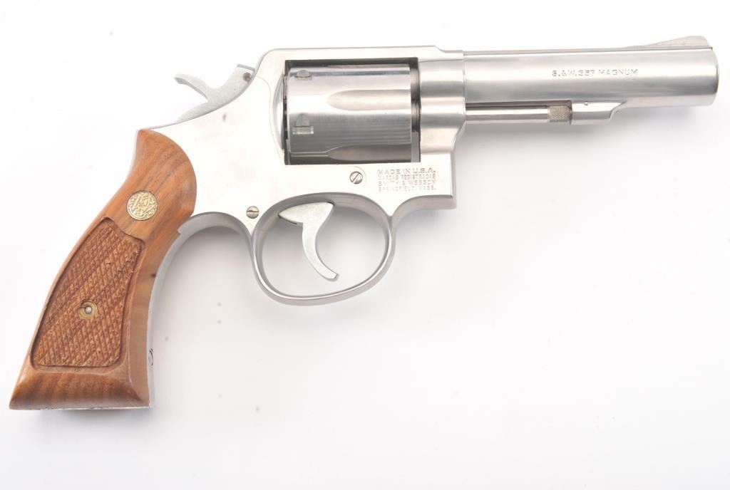 Smith & Wesson Model 65-3 Double Action Stainless Steel Revolver in .357 Mag. caliber with a 4" slightly heavy barrel, S/N 30D3771. Fine to excellent used condition in the box. Limited firing and use. The gripsare dry from storage. (Modern/PPT) Est.: $400-$800