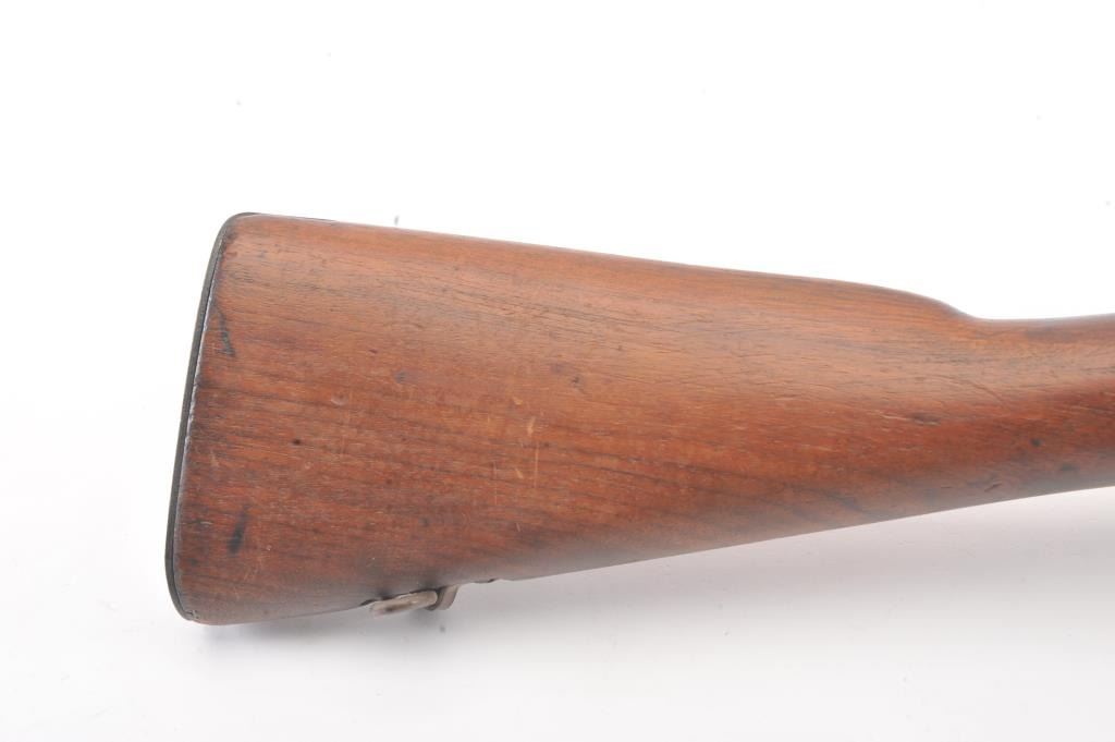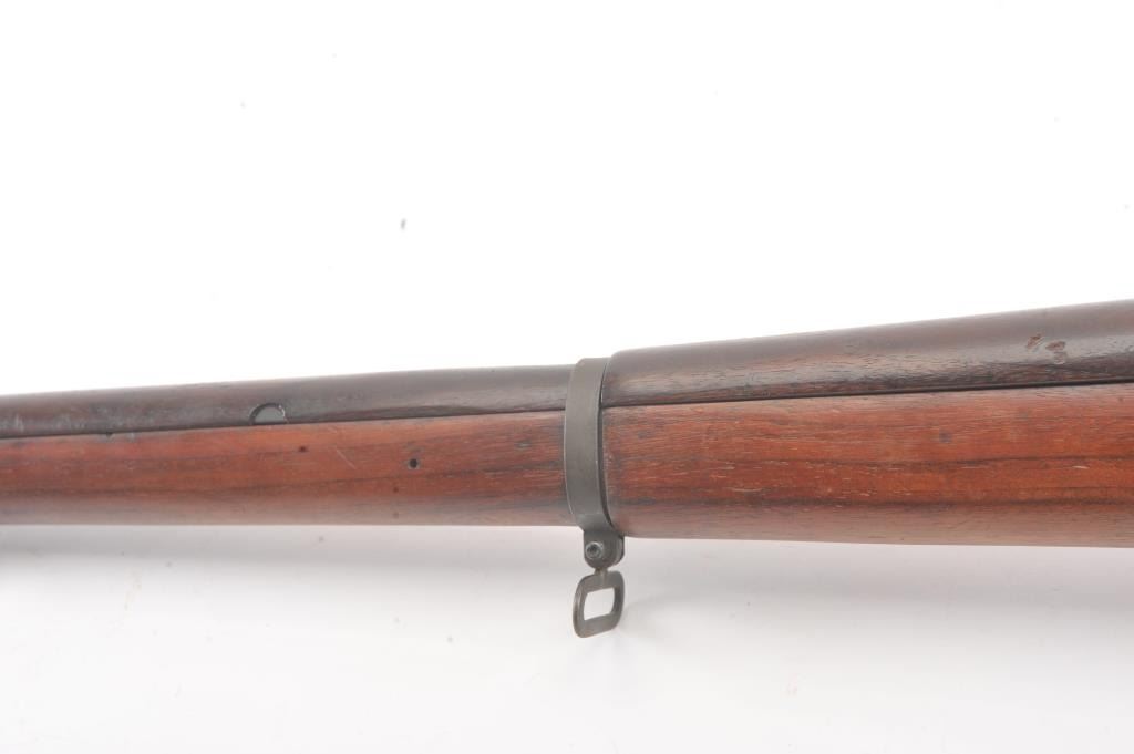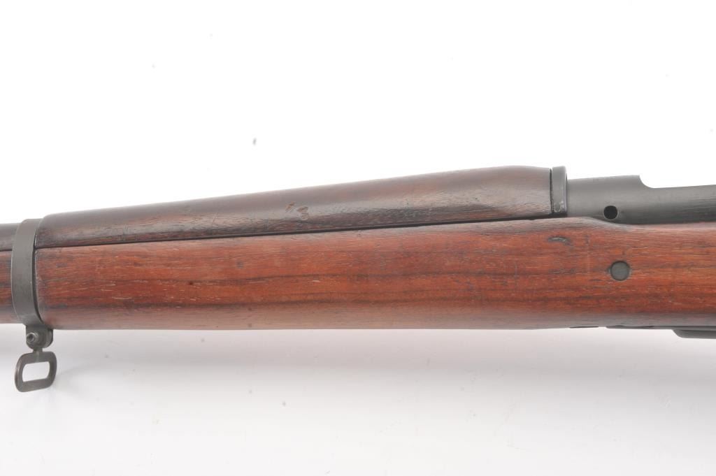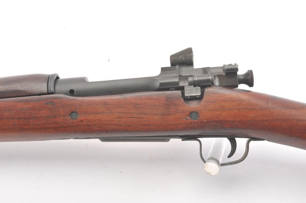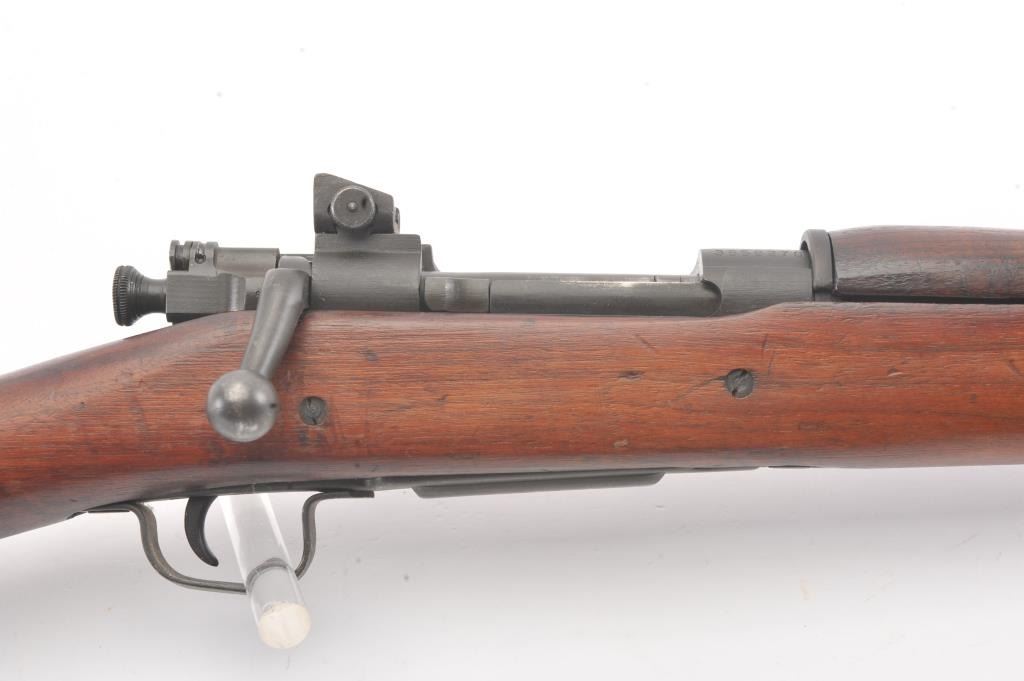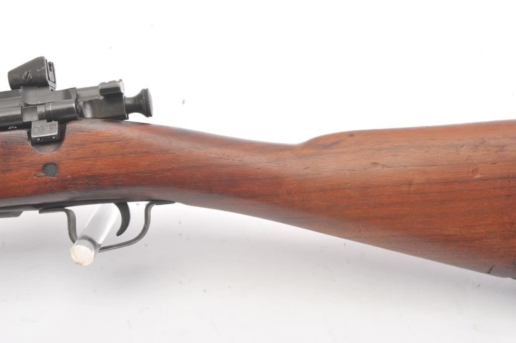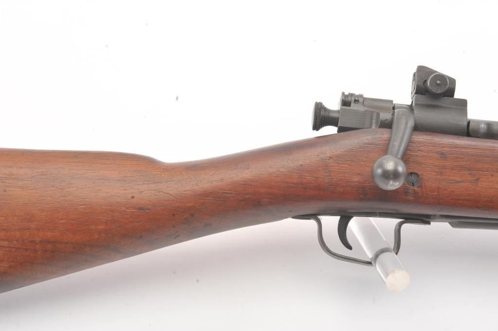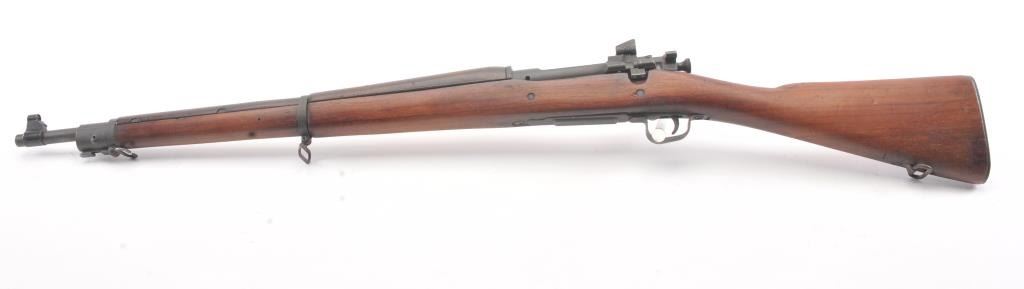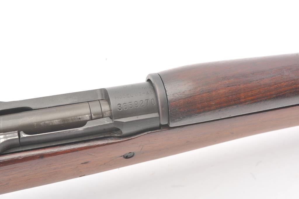 U.S. Model 03-A3 Smith Corona bolt action rifle, .30-06 caliber, Serial #3659270. The rifle is in very good overall condition with a 24” barrel dated 3-43 with the flaming bomb emblem. The rifle retains the majority ofthe military finish with light surface rust at the front sling swivel. The smooth wood stock is in very good condition with small mars, repairs and a Circle P cartouche behind the trigger guard. The bore is fair, theaction is crisp and the markings are good on this desirable Smith Corona 03-A3. Est.: $400-$800. (C+R).
