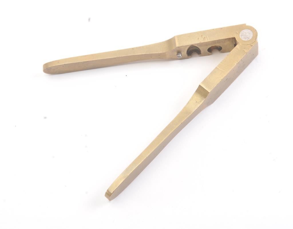Early brass pocket mold .31 caliber with no sprue cutter. A few scratches and dents with crisp cavities. Good for case. Est.: $150-$300