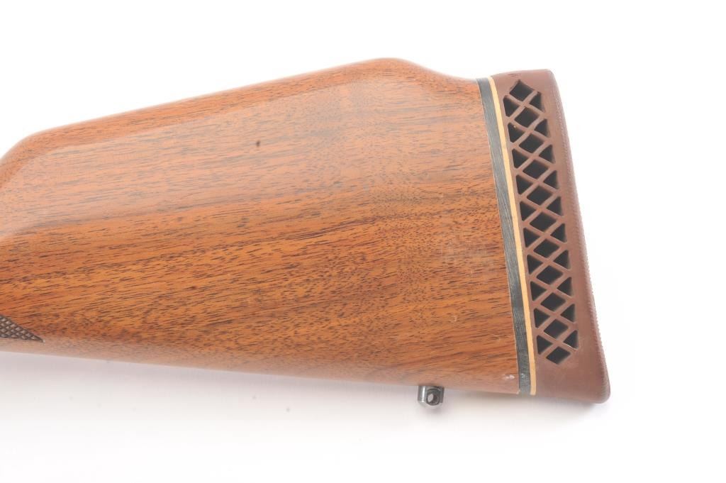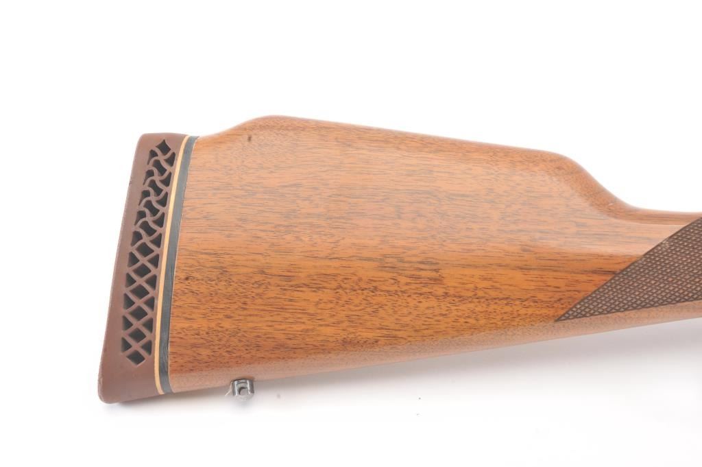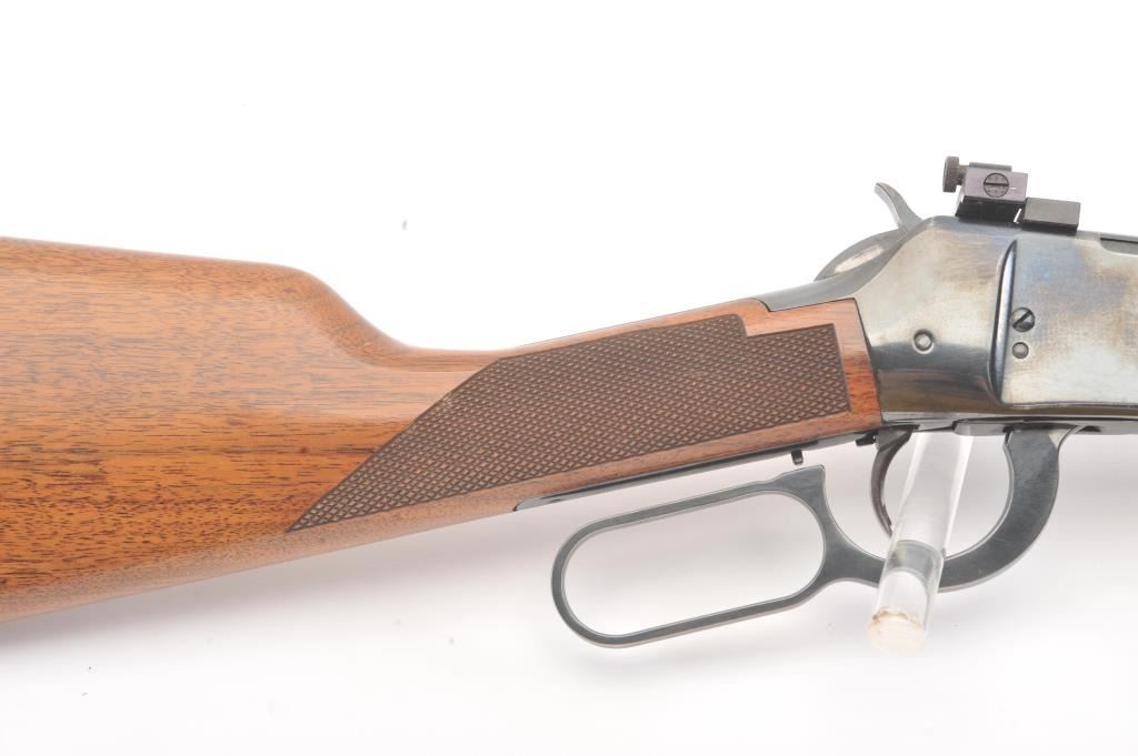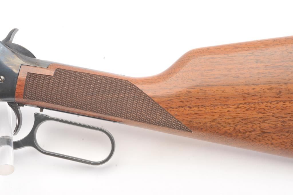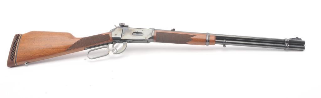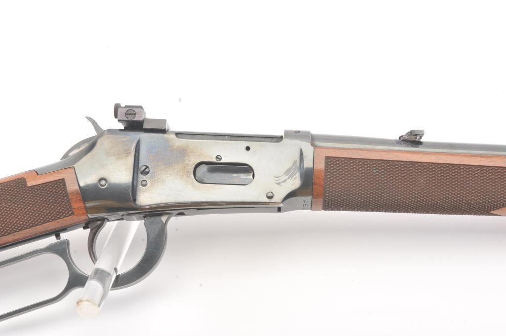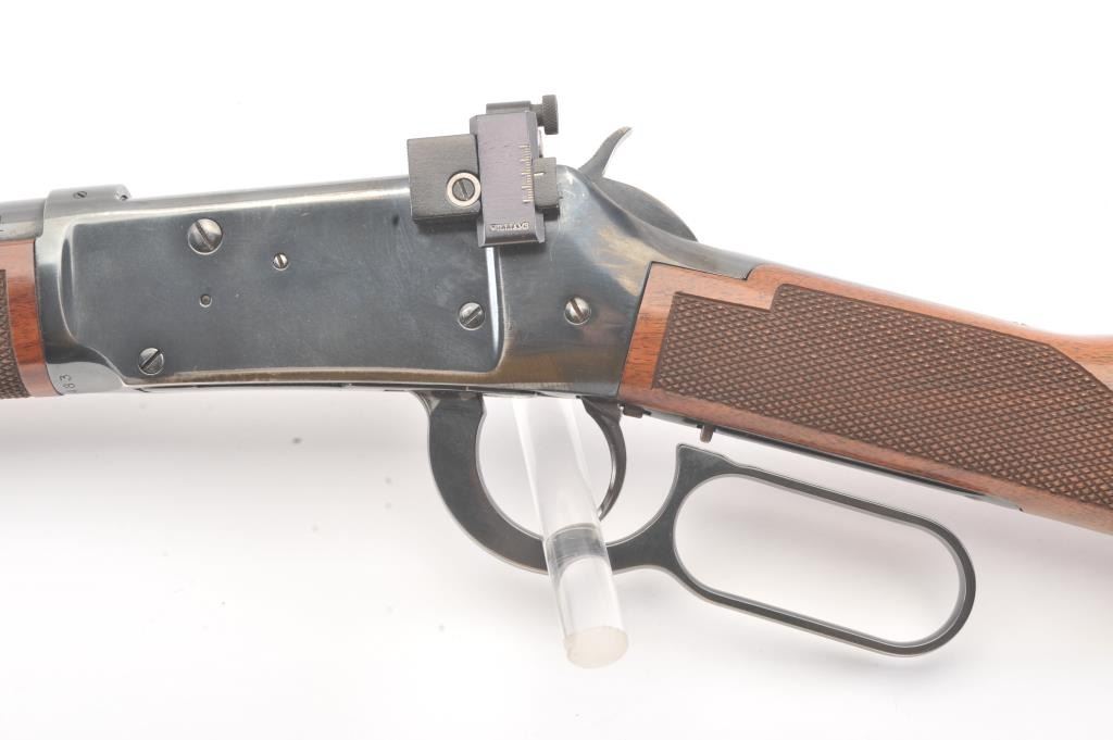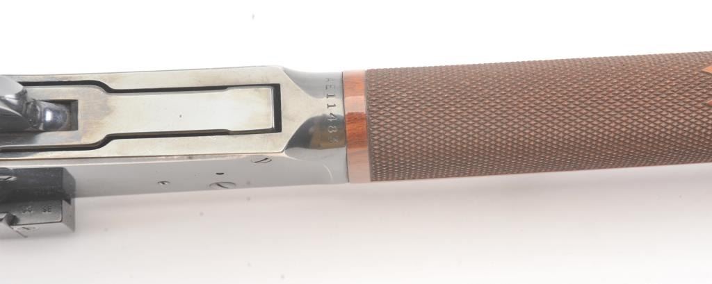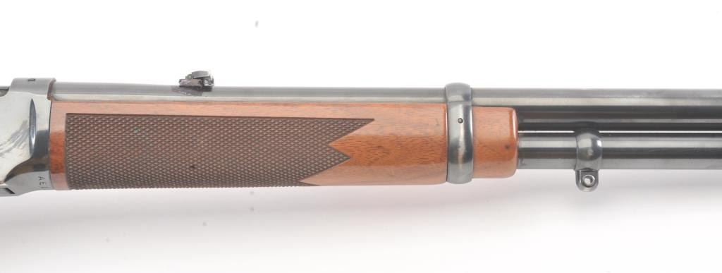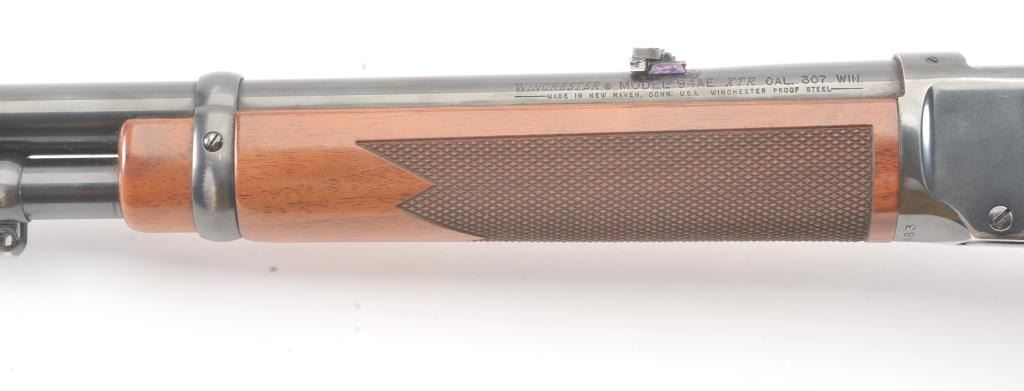 Winchester Model 94AE XTR lever action rifle, .307 Winchester caliber, Serial #AE11483. The rifle is in very good to nearly fine overall condition with a 20” barrel and full-length magazine. The rifle retains themajority of the blue finish with wear at the muzzle and discoloration around the rear sight. A Williams receiver sight has been added during the period of use. The checkered wood stocks are in very goodcondition with small mars and scratches and a ventilated rubber recoil pad. The bore is good, the action is crisp and the markings are sharp. Est.: $400-$800. (Modern).