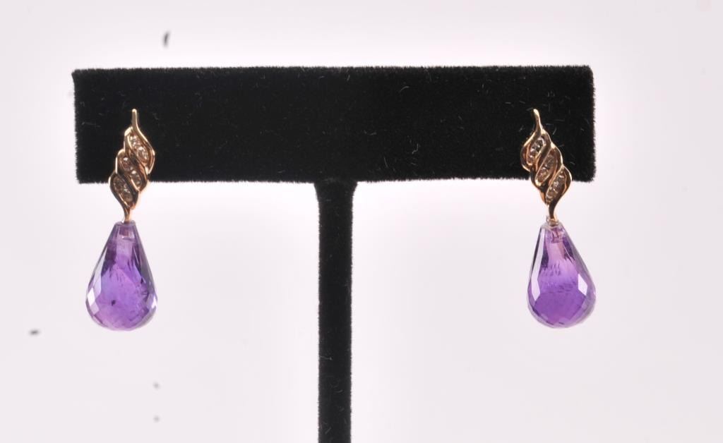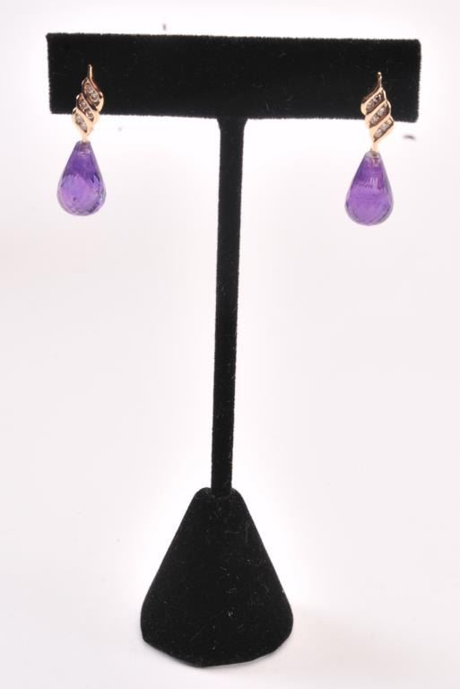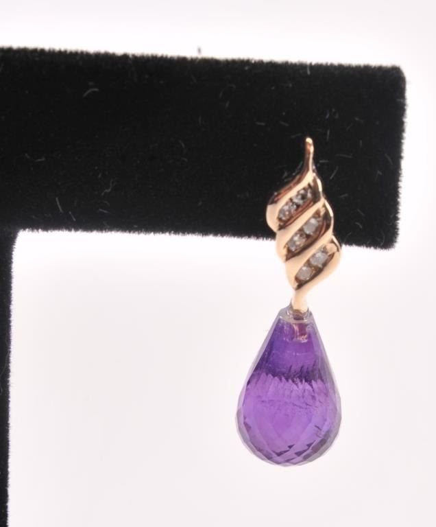 One unique set of amethyst briolettes fashioned as a pair of earrings with accent diamonds Est:$200-400